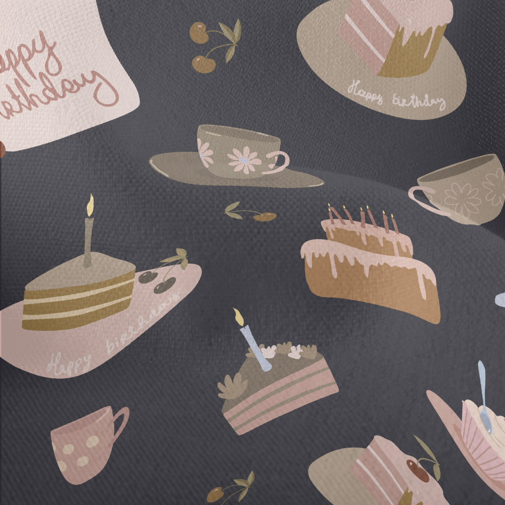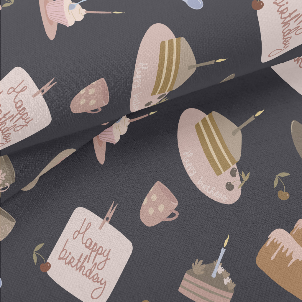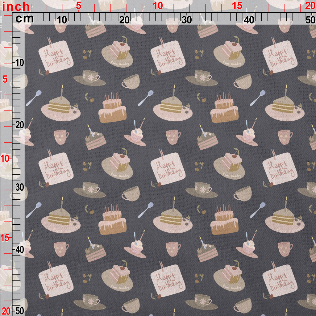 生日祝福與蛋糕杯子竹節麻(幅寬150公分)