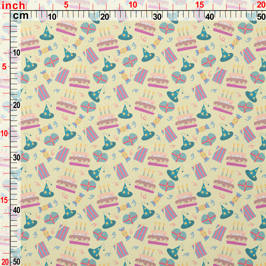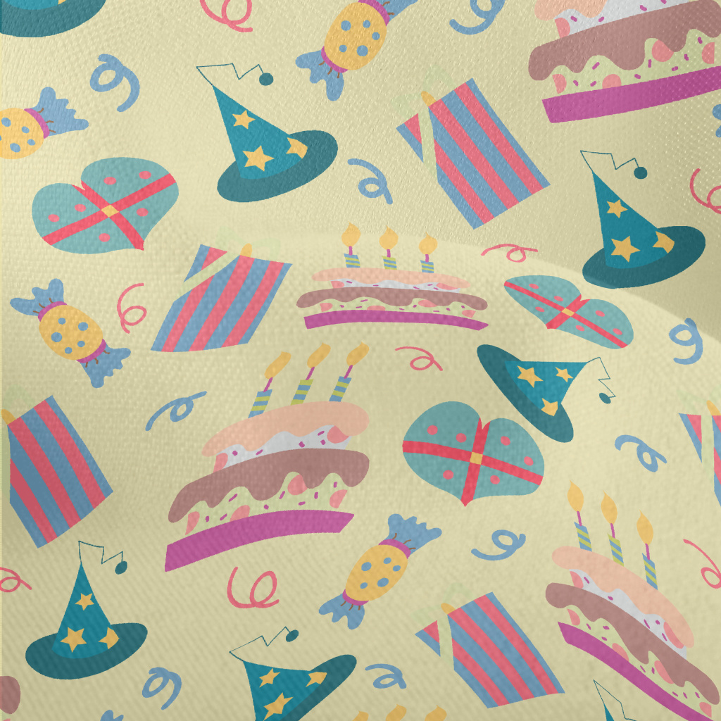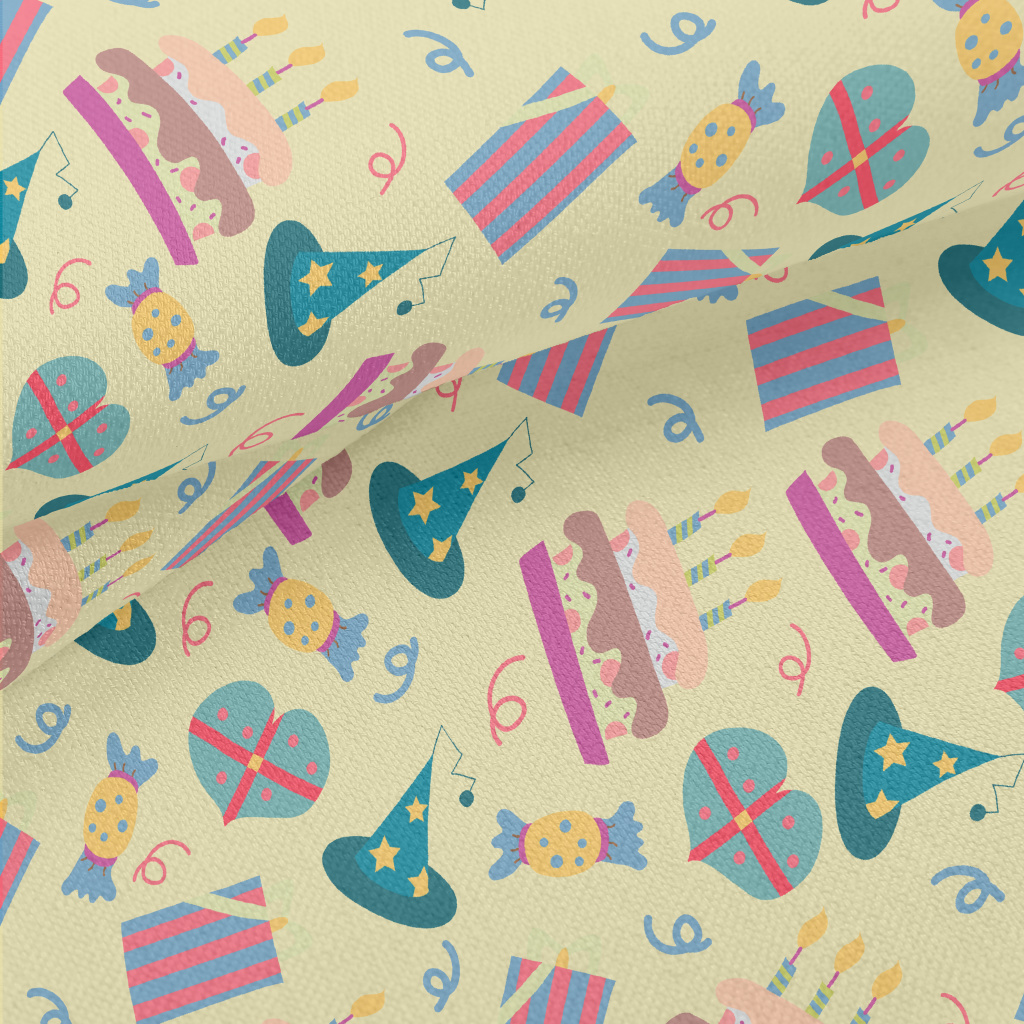 生日蛋糕糖果禮物帽子竹節麻(幅寬150公分)