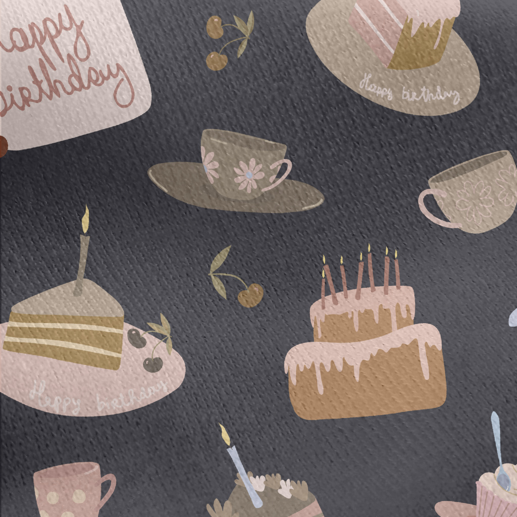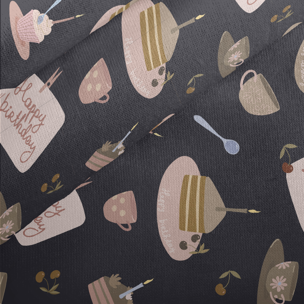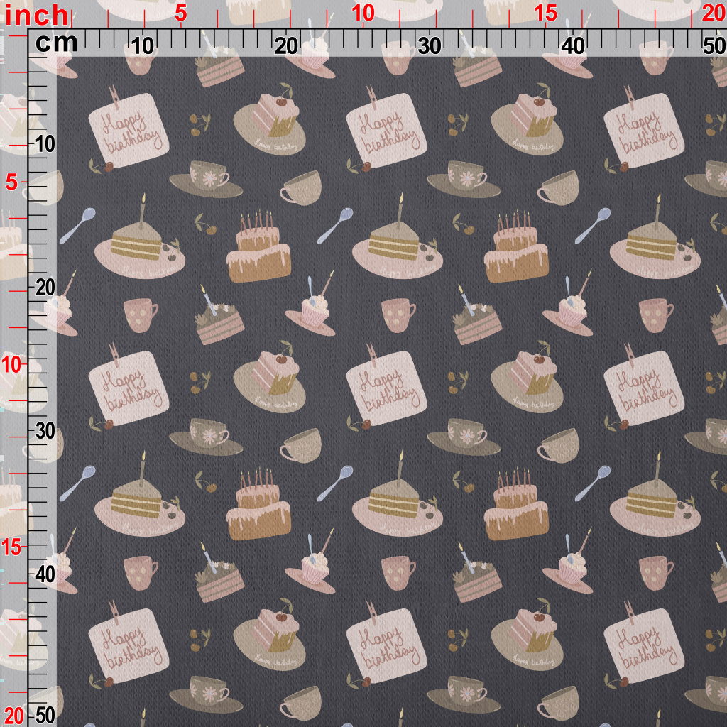 生日祝福與蛋糕杯子刷毛布(幅寬150公分)