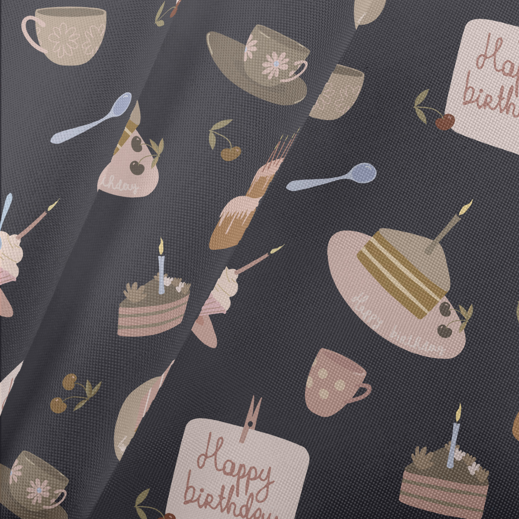 生日祝福與蛋糕杯子春亞紡(幅寬160公分)