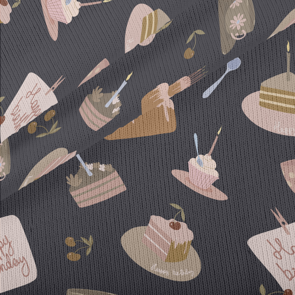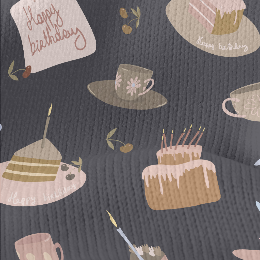 生日祝福與蛋糕杯子仿毛衣布(幅寬150公分)