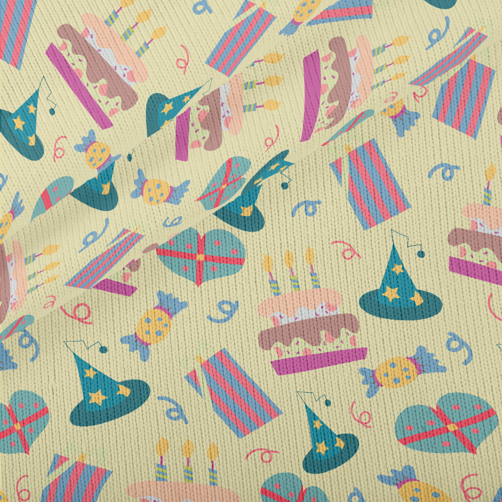 生日蛋糕糖果禮物帽子仿毛衣布(幅寬150公分)