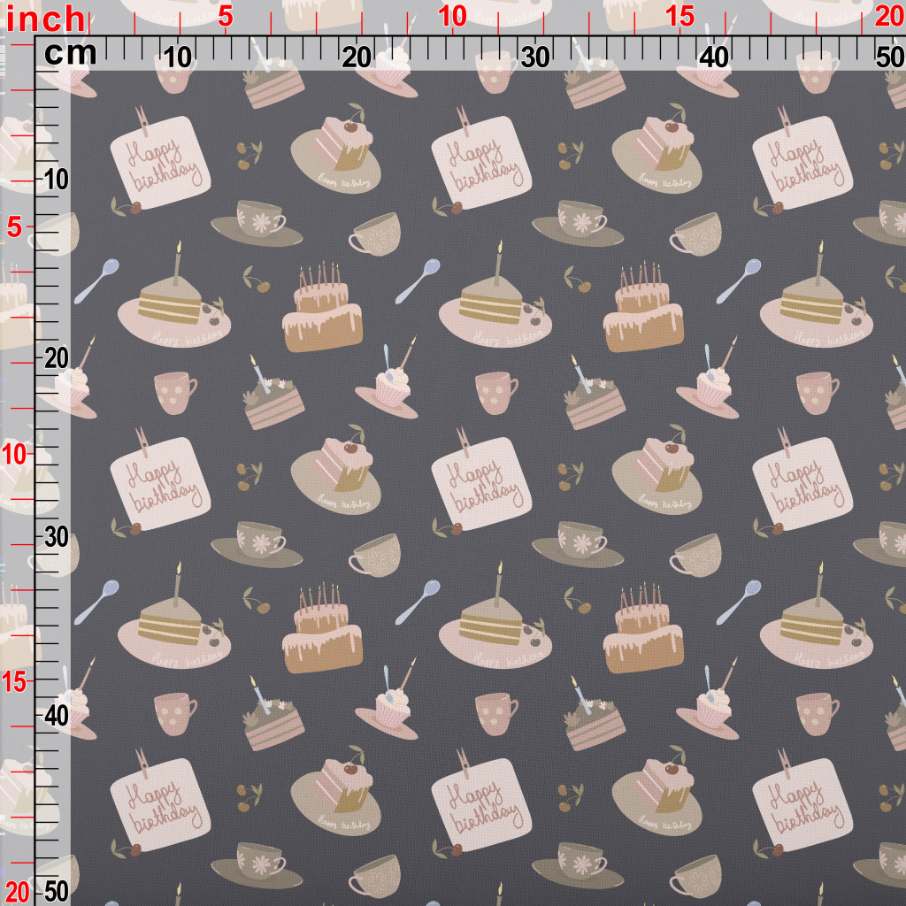 生日祝福與蛋糕杯子薄棉布(幅寬150公分)