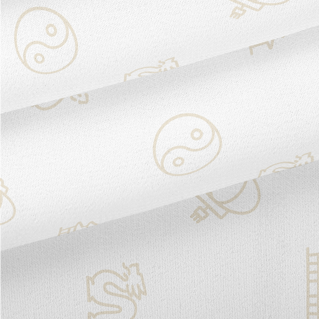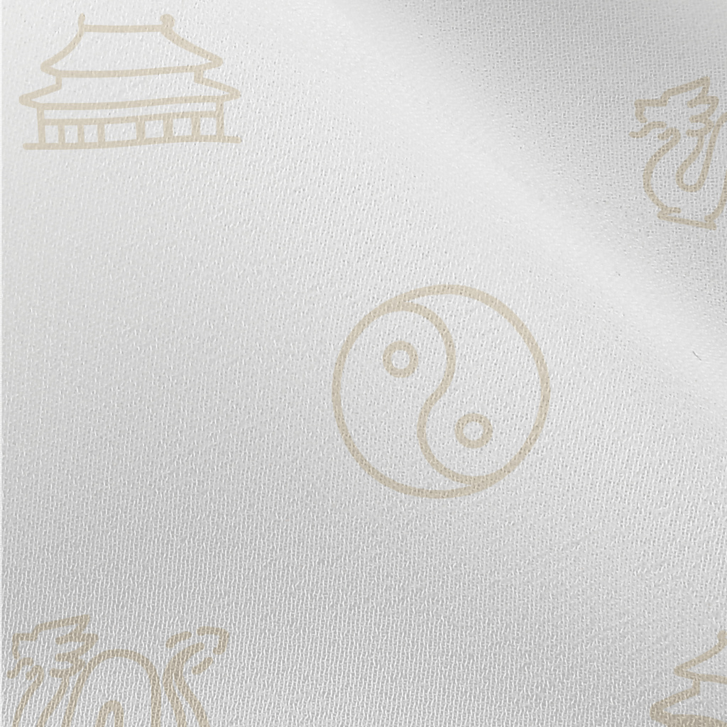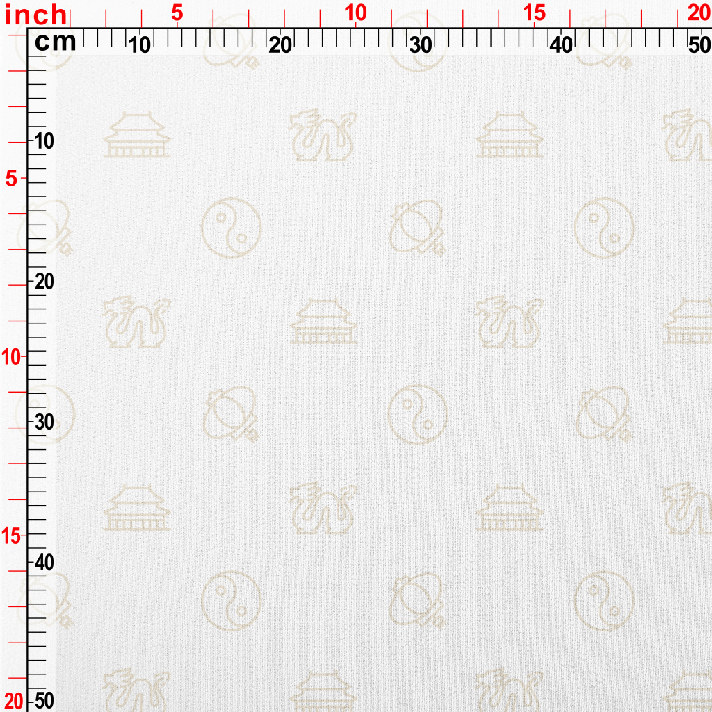太極廟宇和龍圖案雪紡布(幅寬150公分)