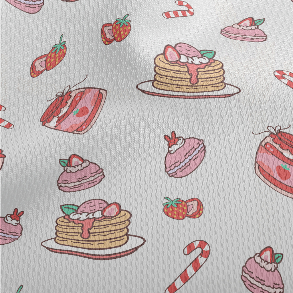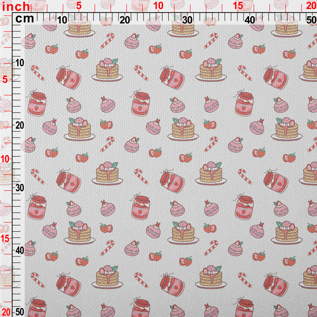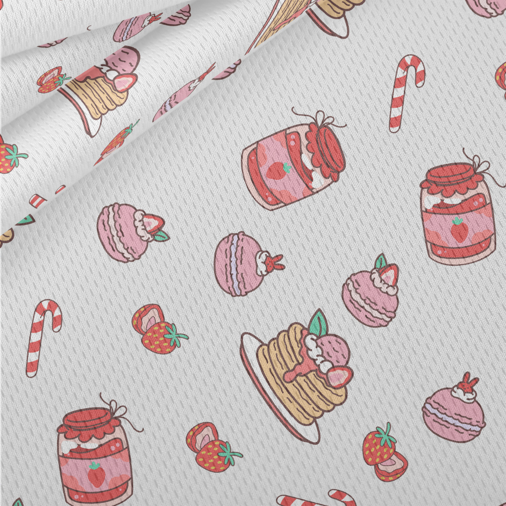 粉色可愛草莓蛋糕與甜點鳥眼布(幅寬160公分)