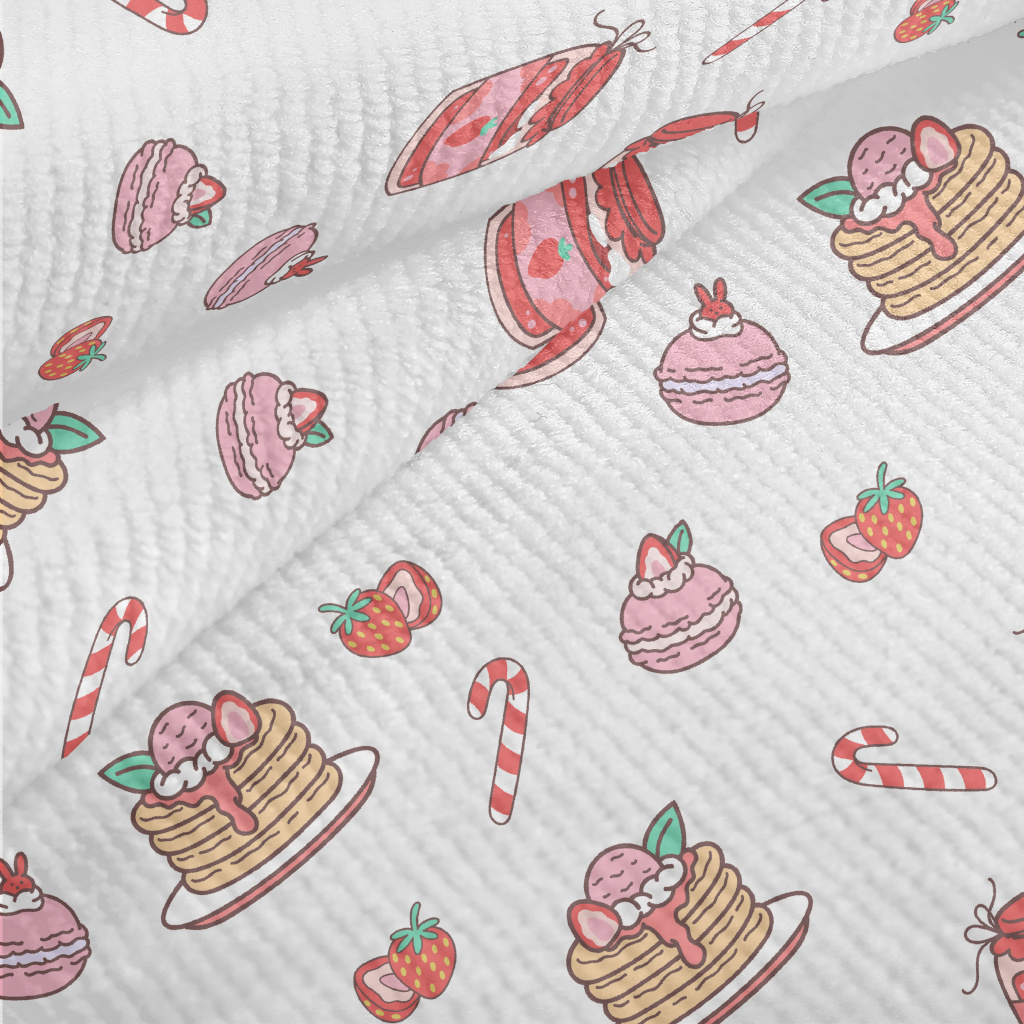 粉色可愛草莓蛋糕與甜點毛巾布(幅寬160公分)