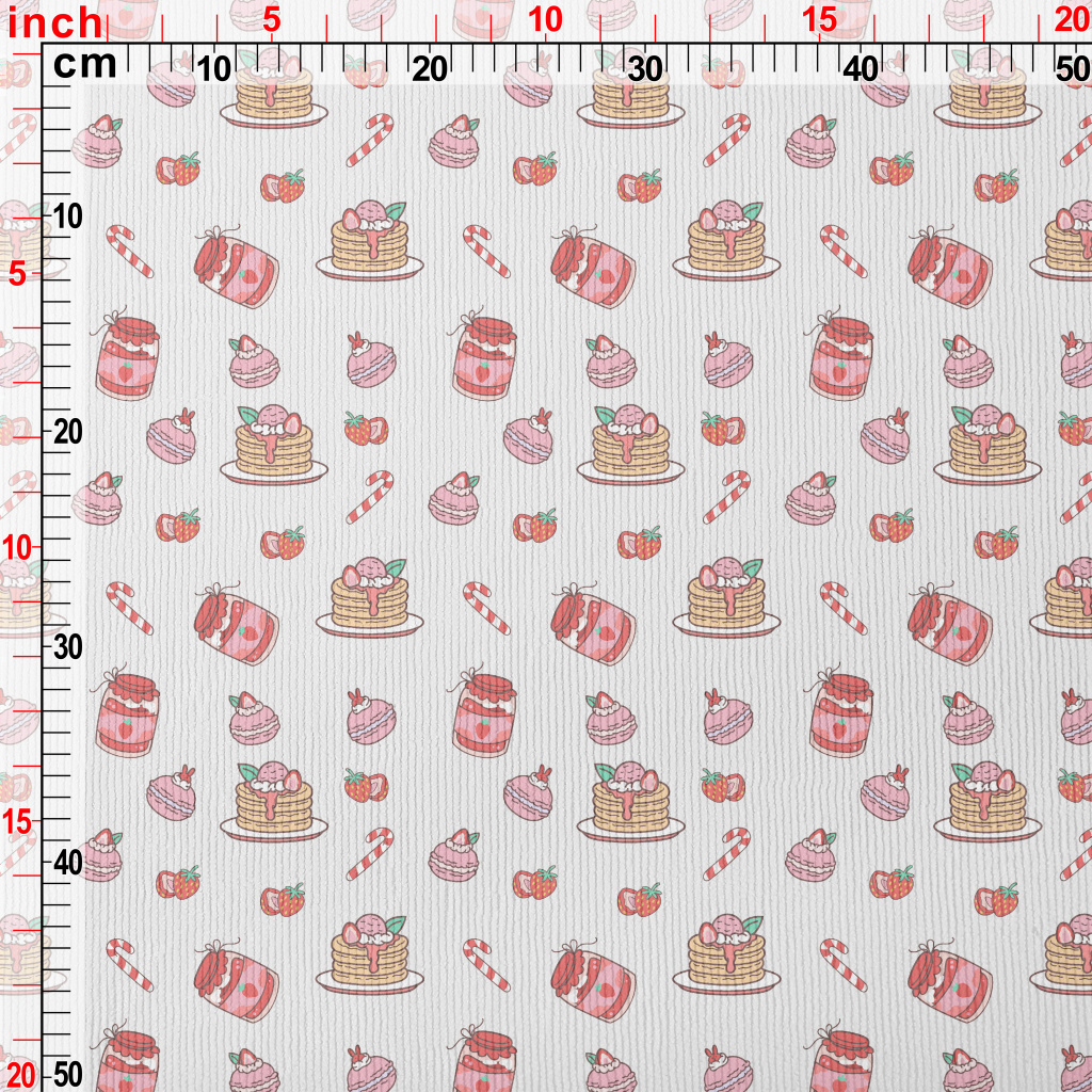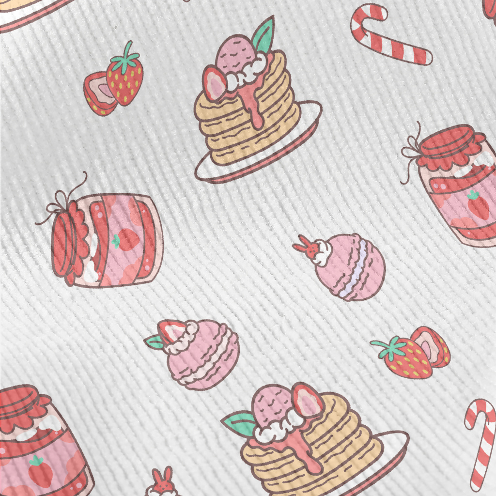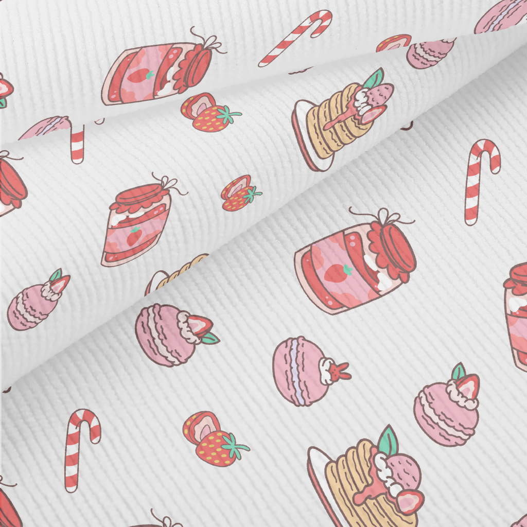 粉色可愛草莓蛋糕與甜點燈芯絨(幅寬150公分)