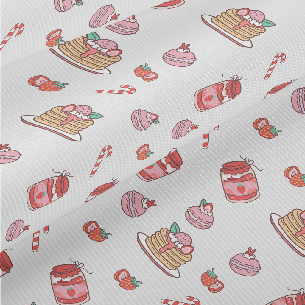 粉色可愛草莓蛋糕與甜點雙斜布(幅寬150公分)