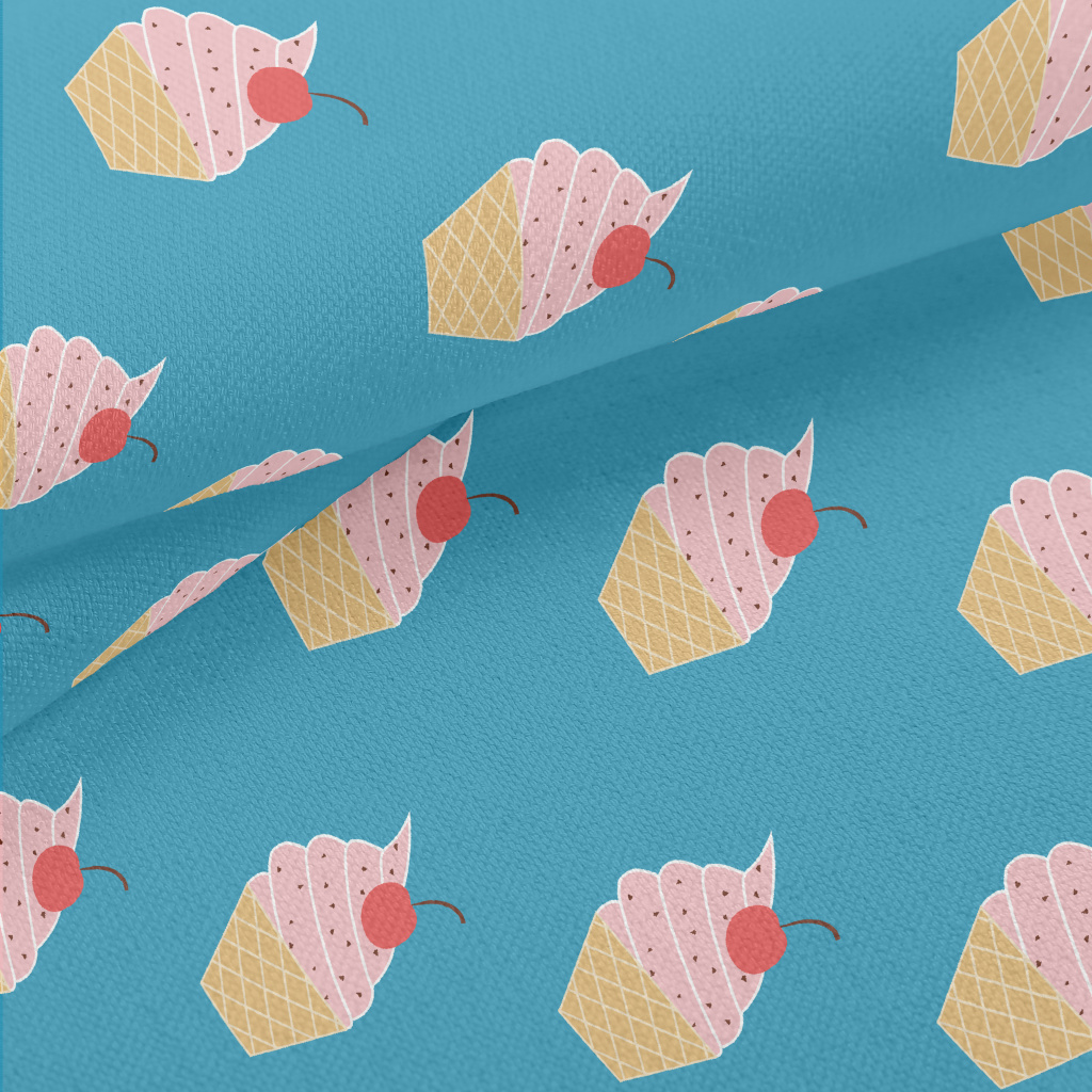 可愛粉色櫻桃蛋糕竹節麻(幅寬150公分)
