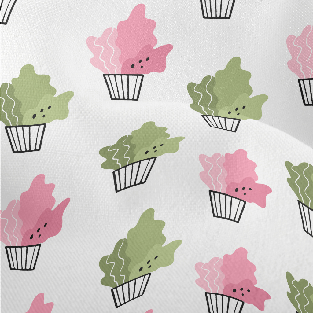 粉色與綠色花盆竹節麻(幅寬150公分)