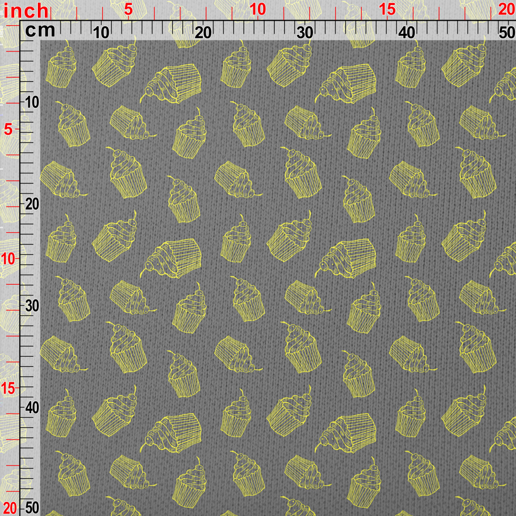 簡約黃線櫻桃杯子蛋糕仿毛衣布(幅寬150公分)