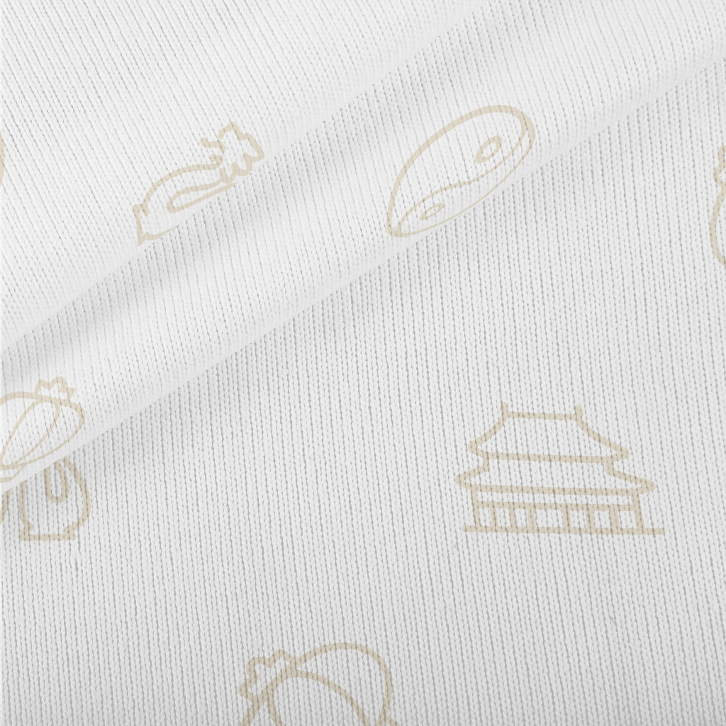 太極廟宇和龍圖案仿毛衣布(幅寬150公分)