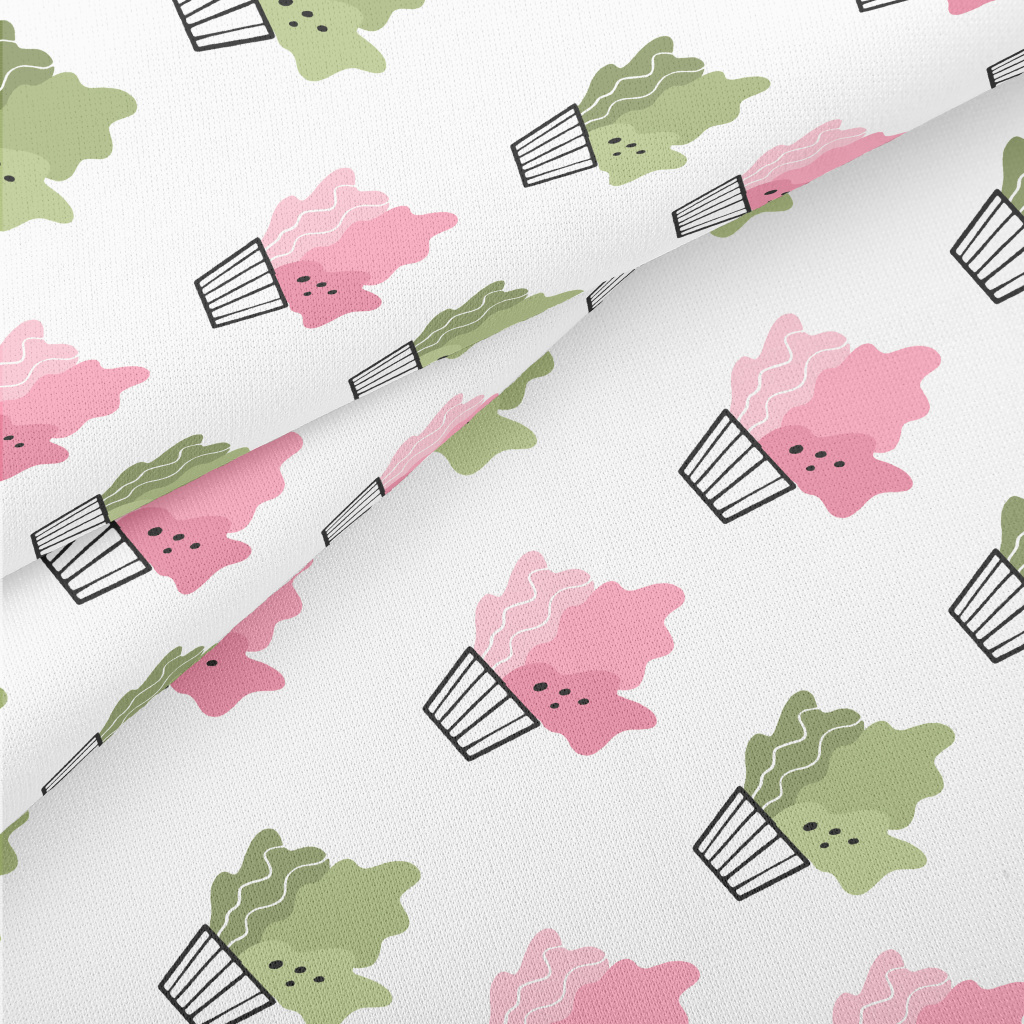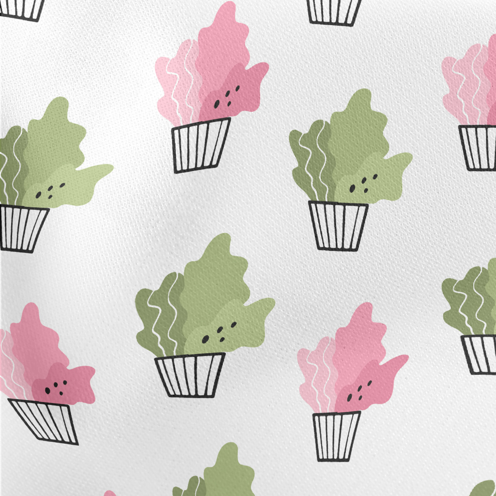 粉色與綠色花盆薄棉布(幅寬150公分)