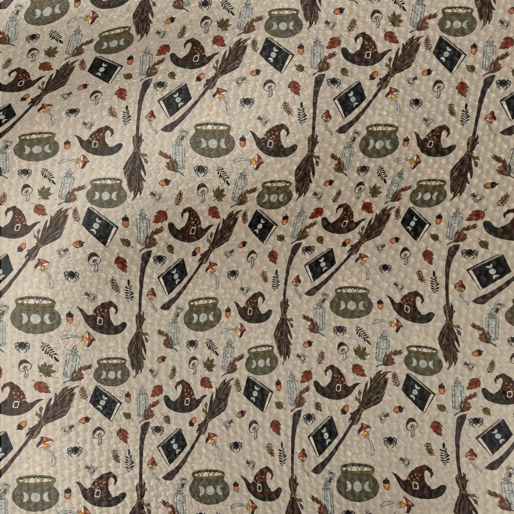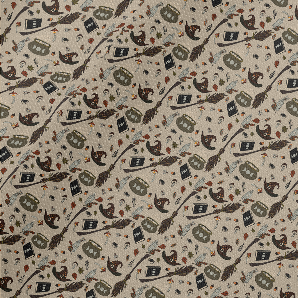 萬聖蜘蛛掃帚巫婆帽圖案帆布(幅寬150公分)