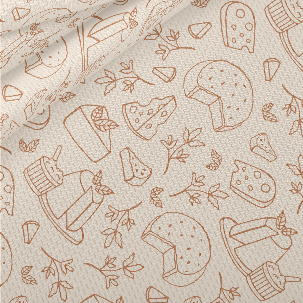 不同種類的乾酪與草葉鳥眼布(幅寬160公分)
