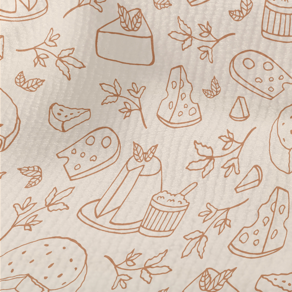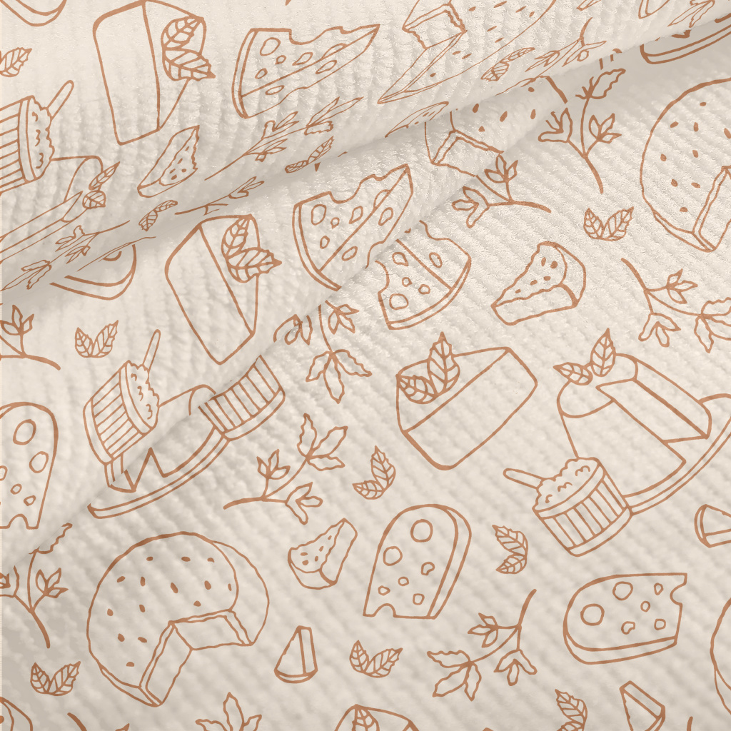 不同種類的乾酪與草葉毛巾布(幅寬160公分)
