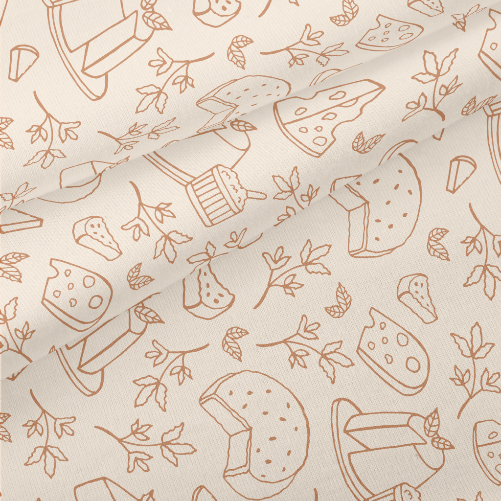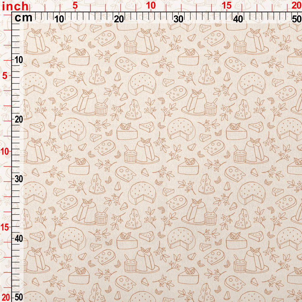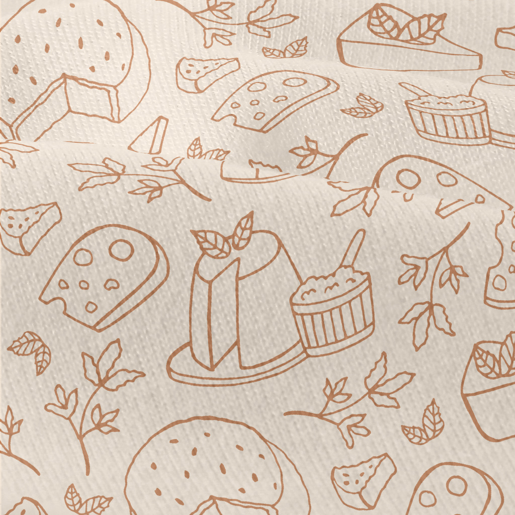 不同種類的乾酪與草葉仿棉布(幅寬150公分)