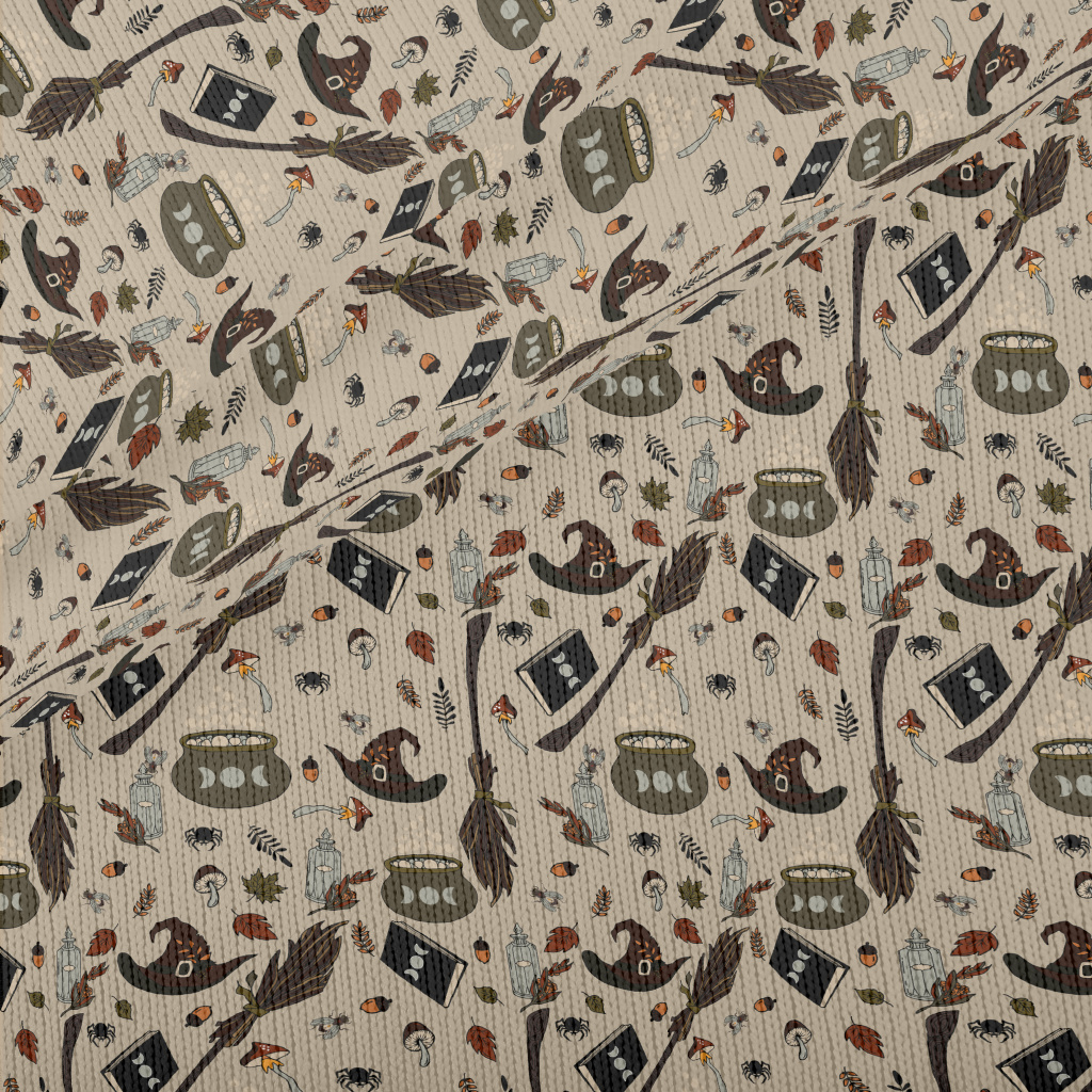 萬聖蜘蛛掃帚巫婆帽圖案仿毛衣布(幅寬150公分)
