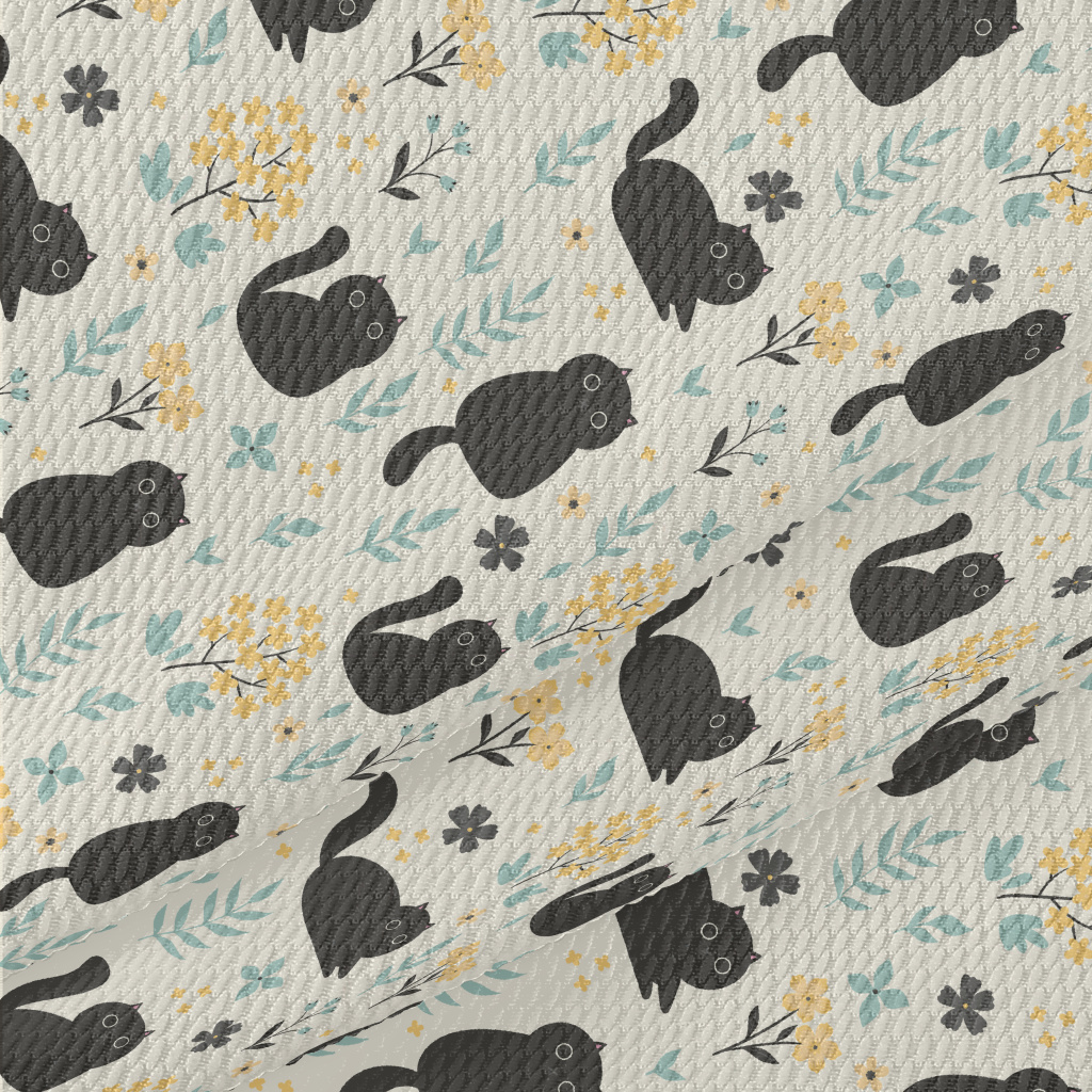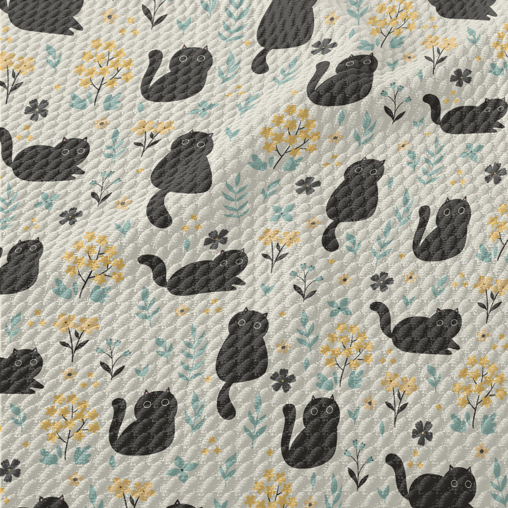 圓滾黑貓和花朵泡泡布(幅寬160公分)