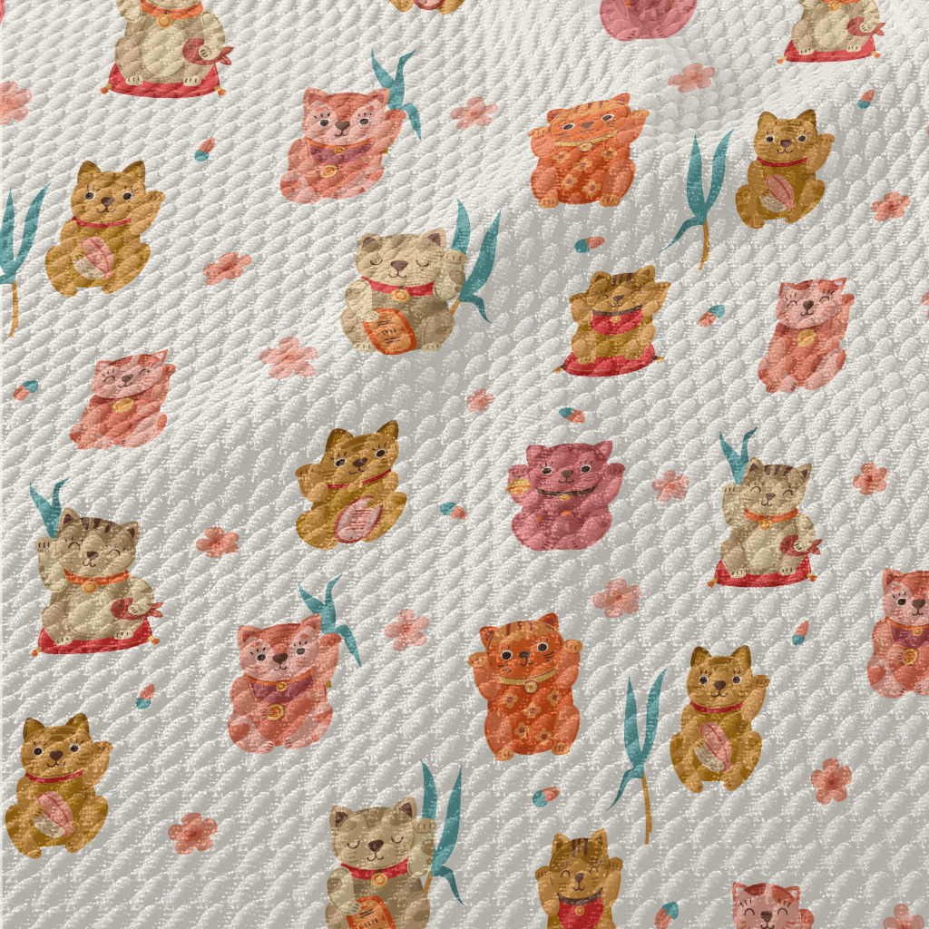 彩色可愛招財貓泡泡布(幅寬160公分)