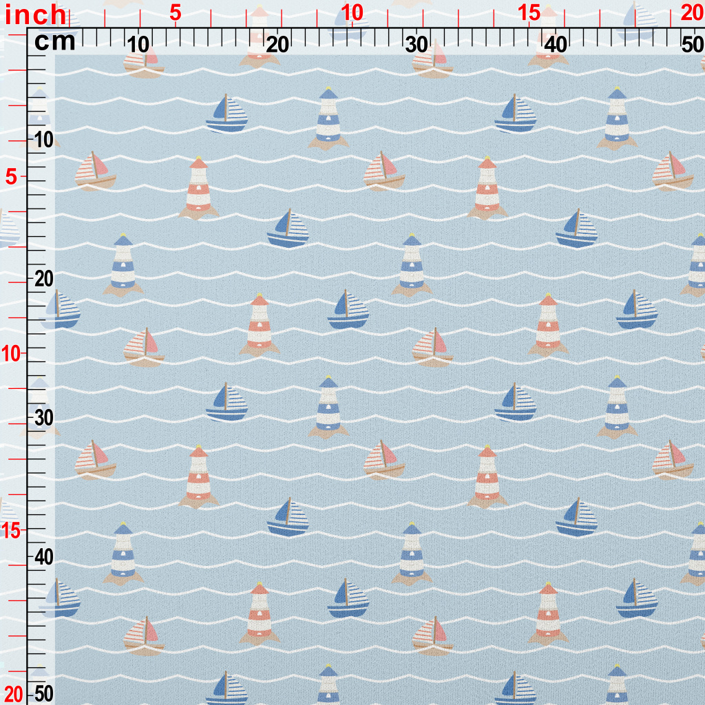 紅藍色帆船與燈塔雪紡布(幅寬150公分)