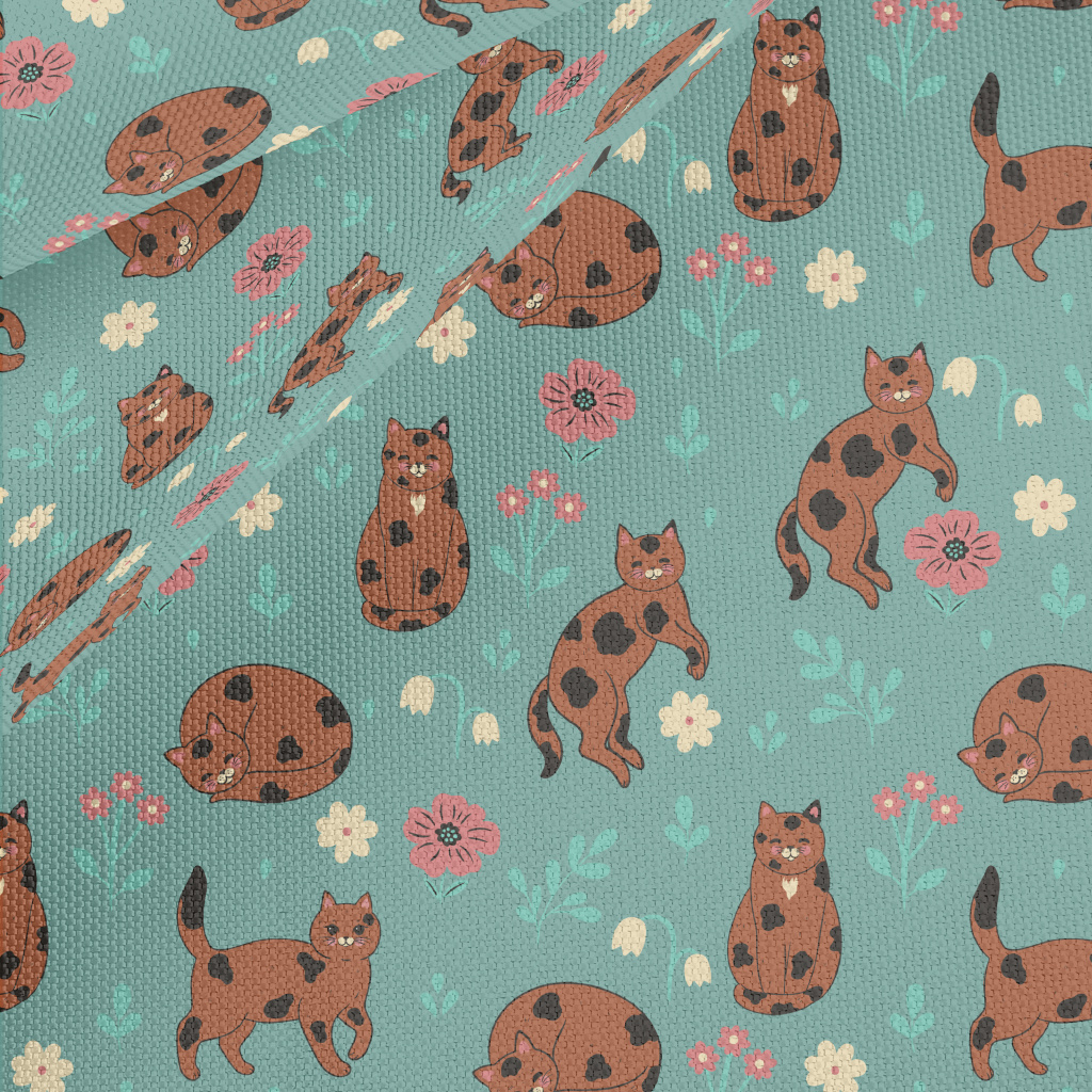 咖啡色花紋貓咪牛津布(幅寬150公分)