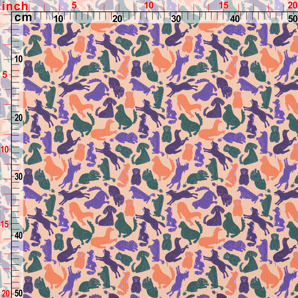 剪影線條彩色的狗狗帆布(幅寬150公分)