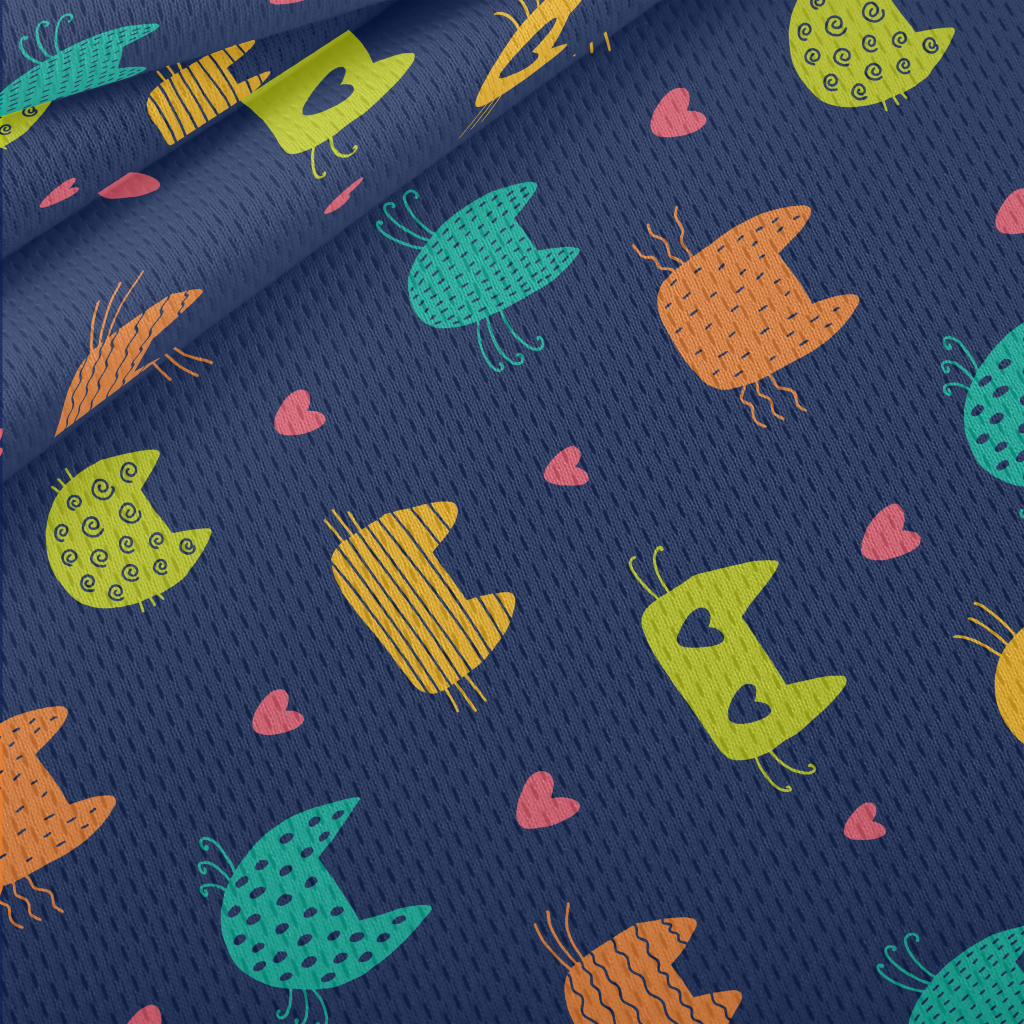 不同色塊設計貓咪鳥眼布(幅寬160公分)