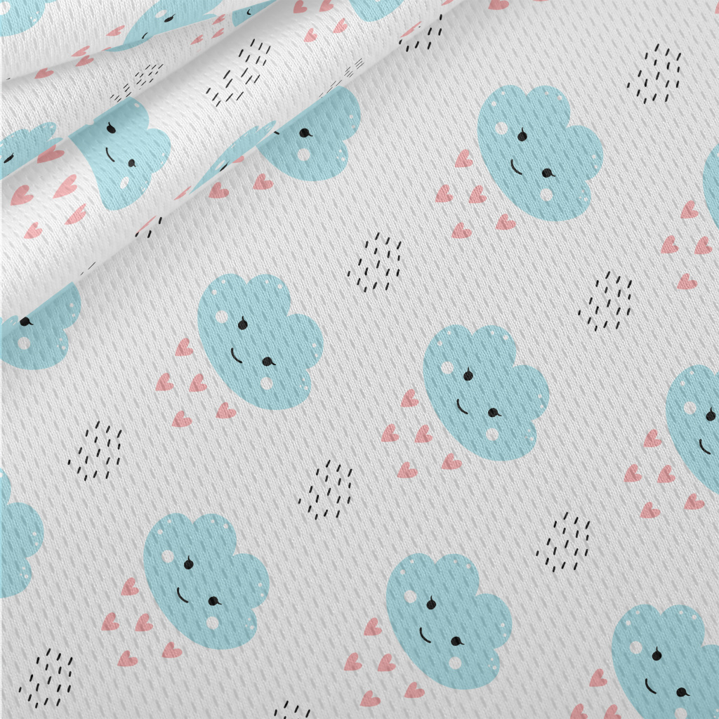 下著愛心的雲朵鳥眼布(幅寬160公分)
