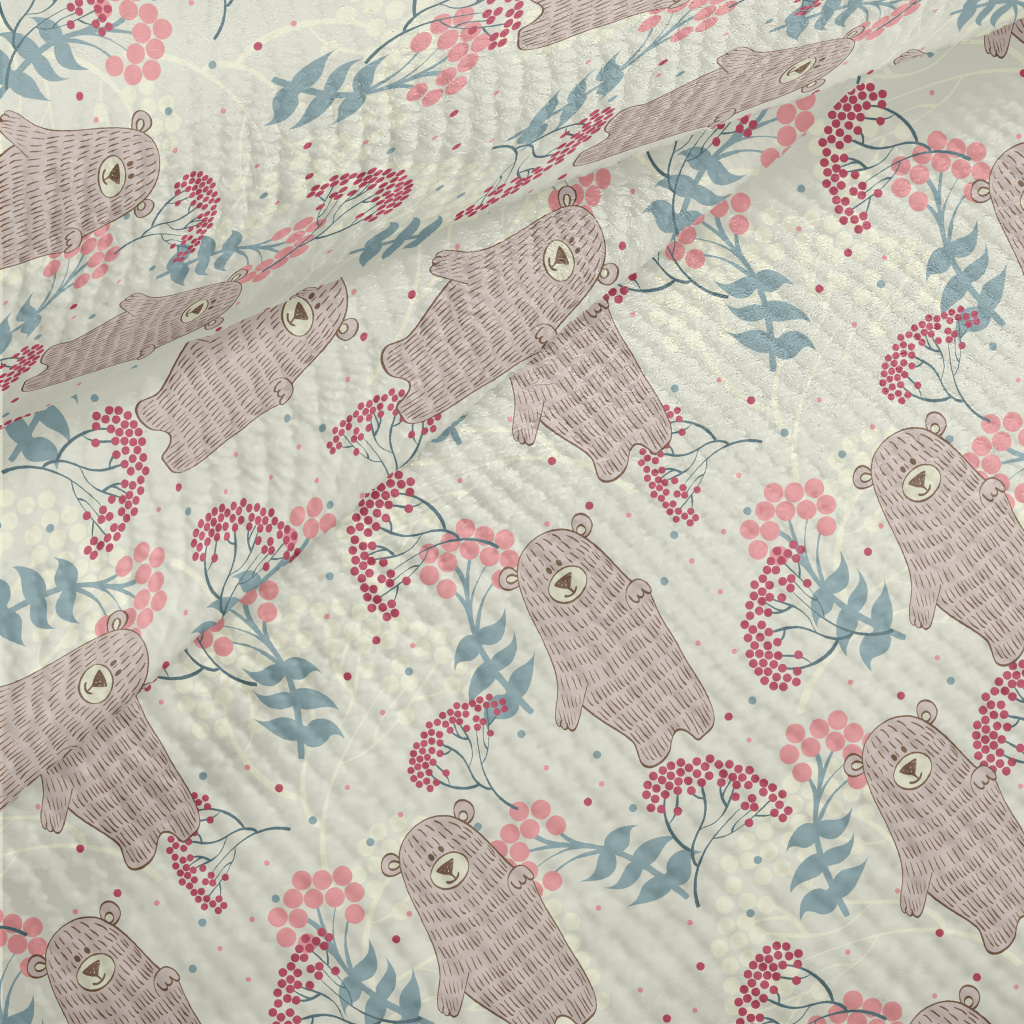 手繪小熊和花草毛巾布(幅寬160公分)