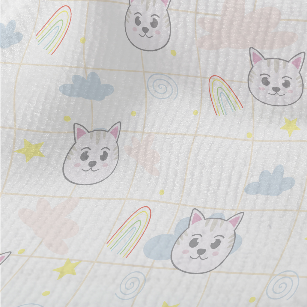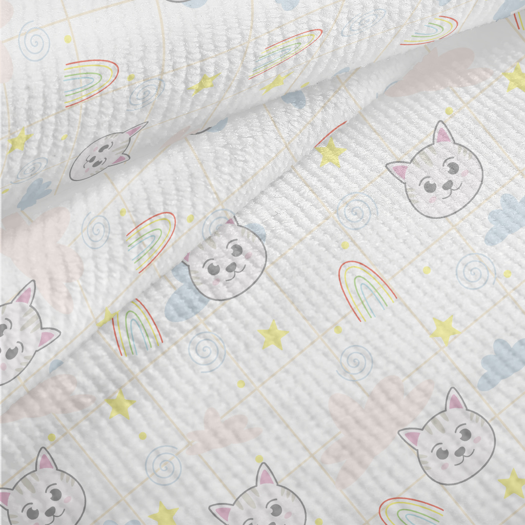 大眼貓咪和彩虹毛巾布(幅寬160公分)