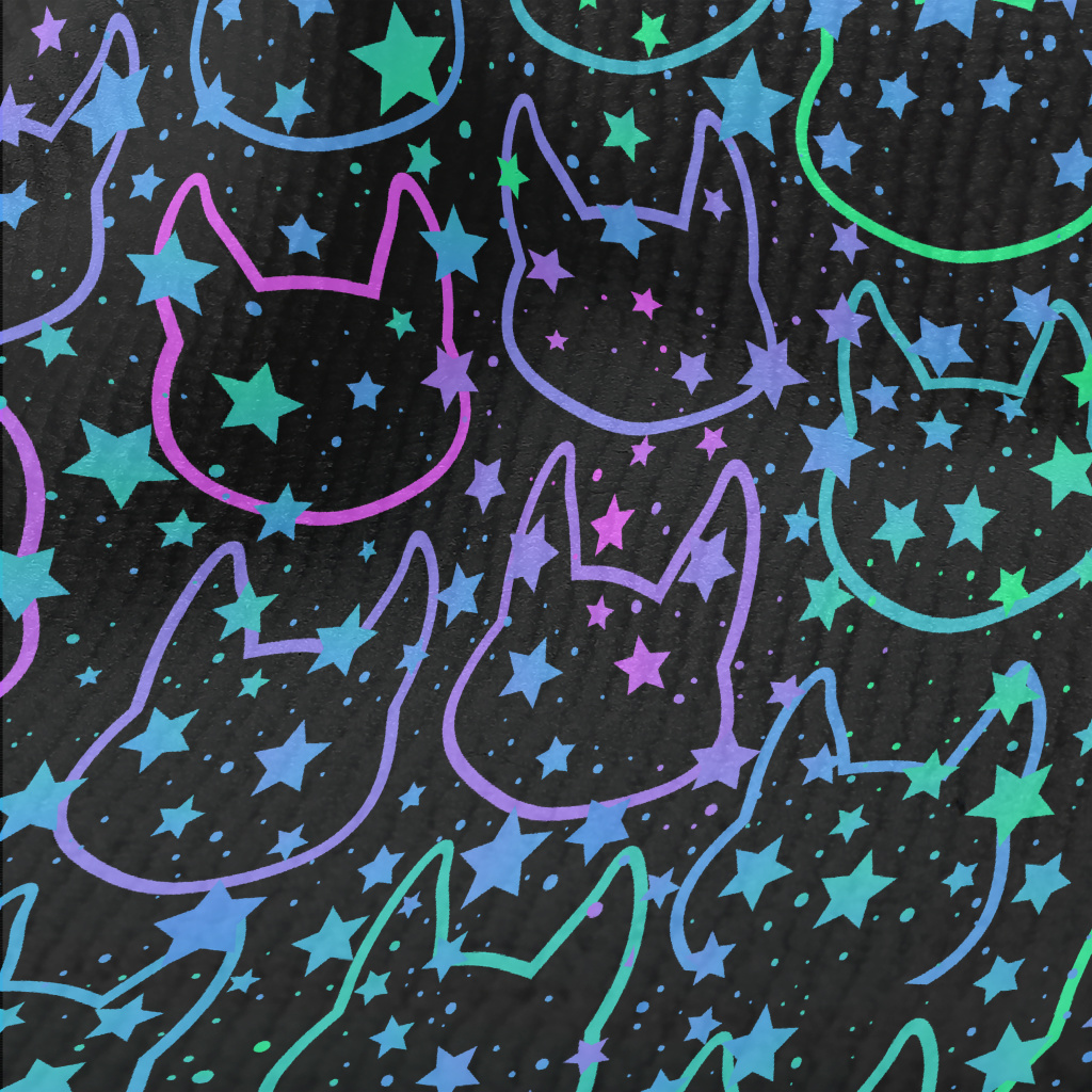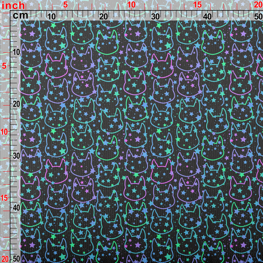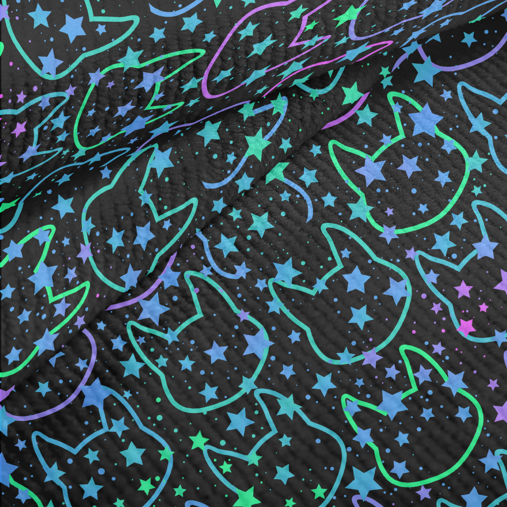 線條明亮貓咪與星星毛巾布(幅寬160公分)