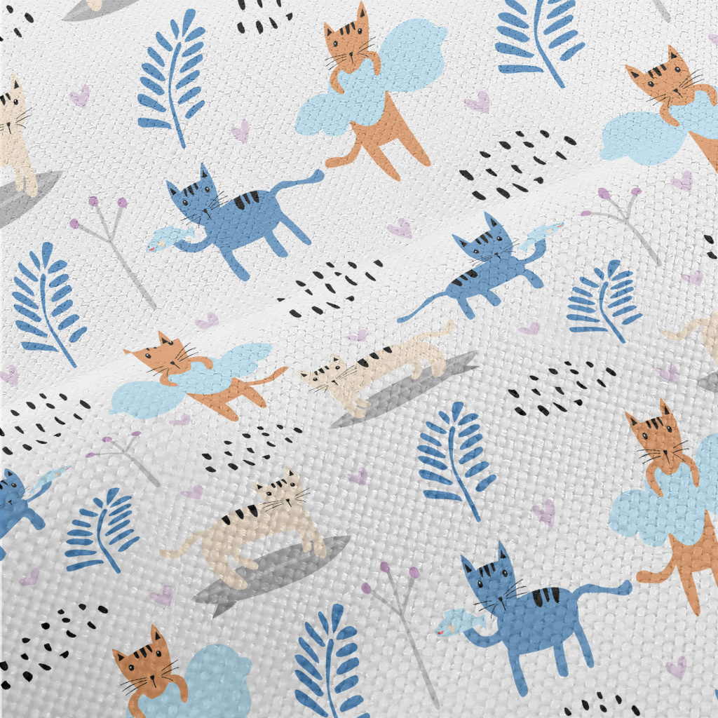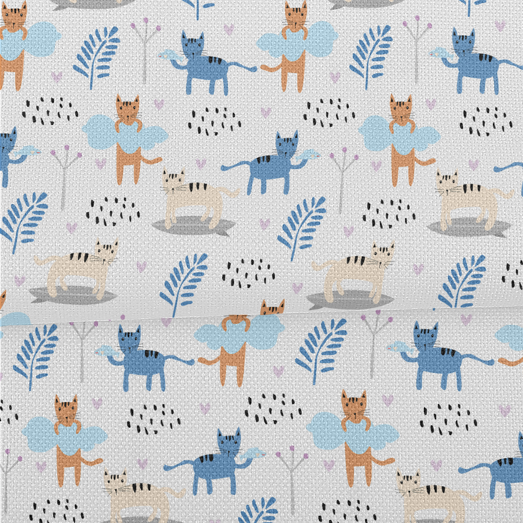 色塊卡通貓咪麻布(幅寬150公分)