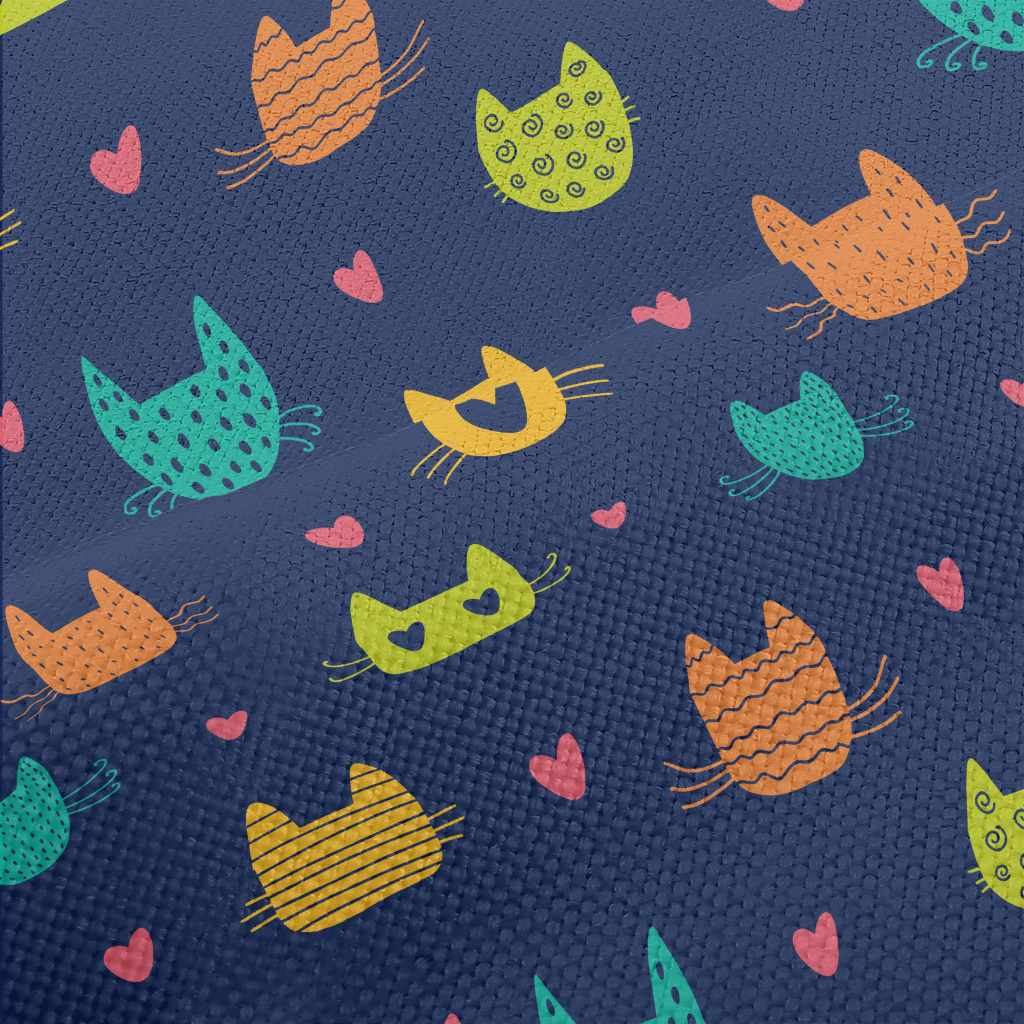 不同色塊設計貓咪麻布(幅寬150公分)