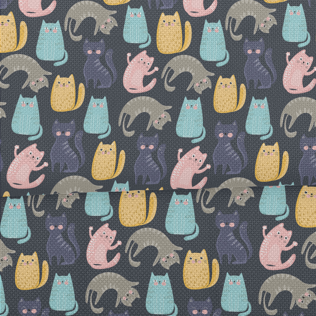 彩色頑皮貓咪麻布(幅寬150公分)