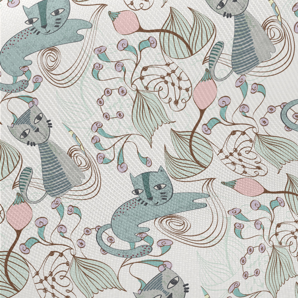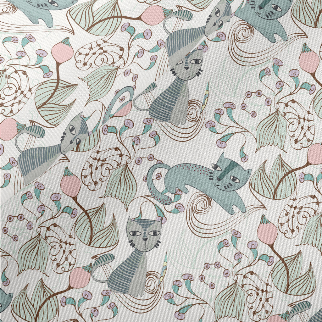 手繪質感貓咪花朵斜紋布(幅寬150公分)