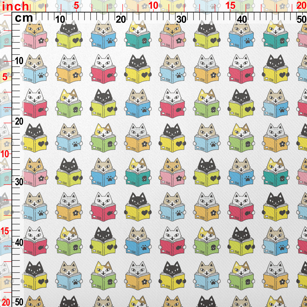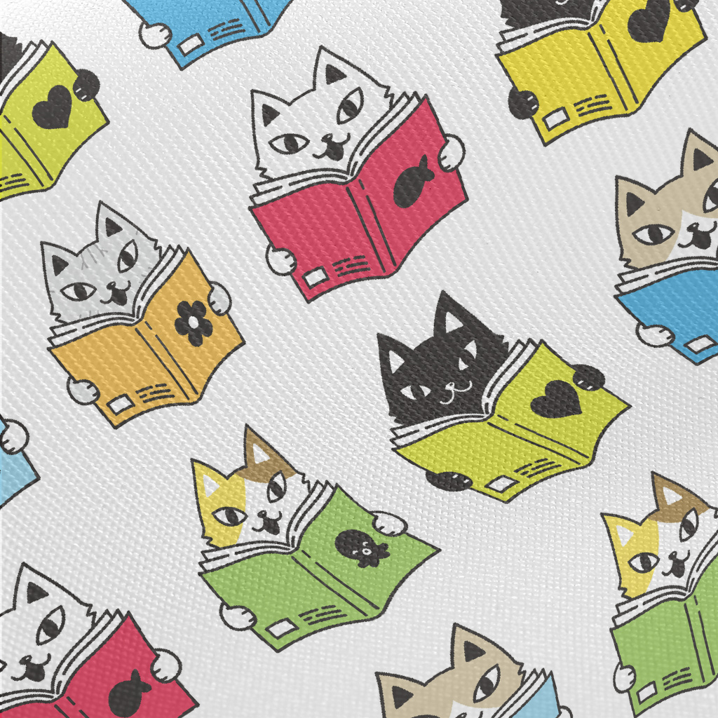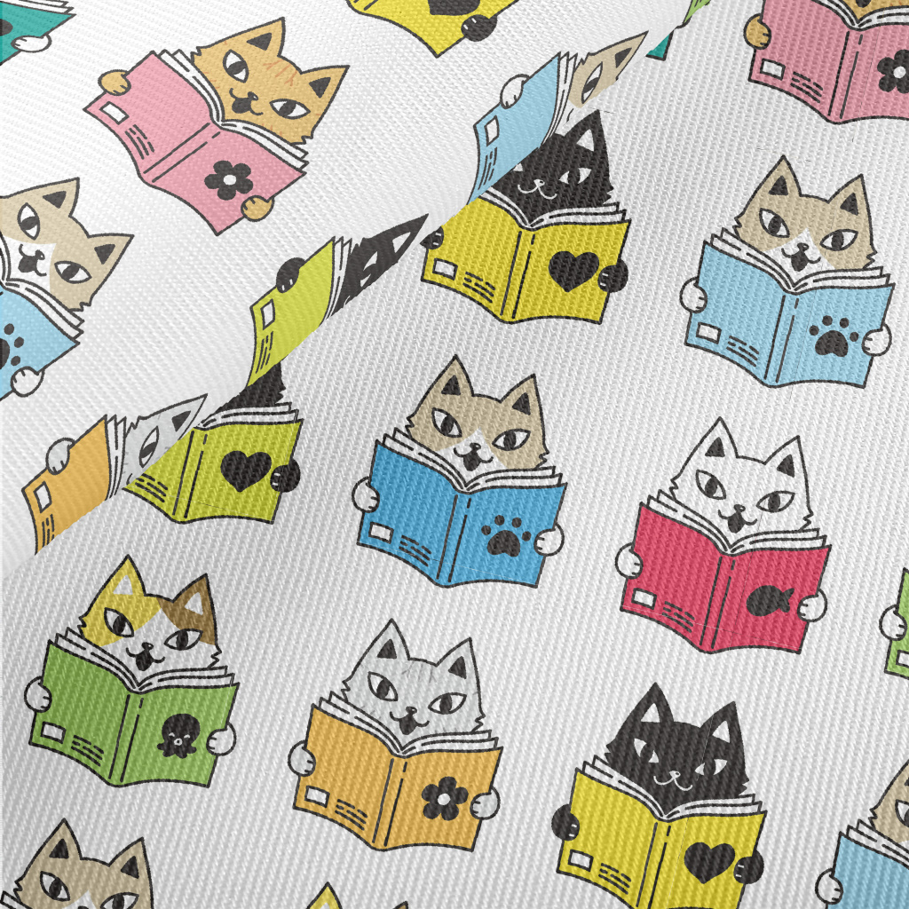 努力讀書的貓咪斜紋布(幅寬150公分)