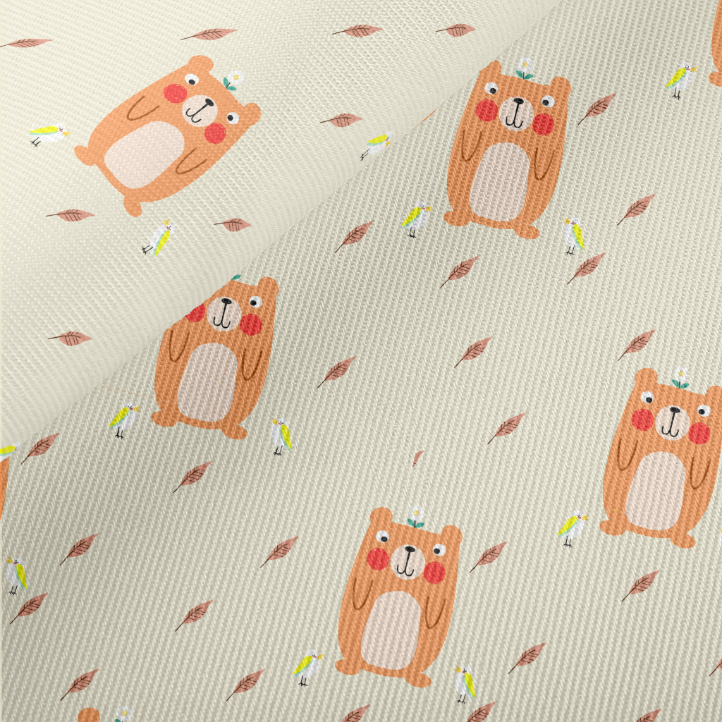 憨傻可愛熊熊和小鳥斜紋布(幅寬150公分)