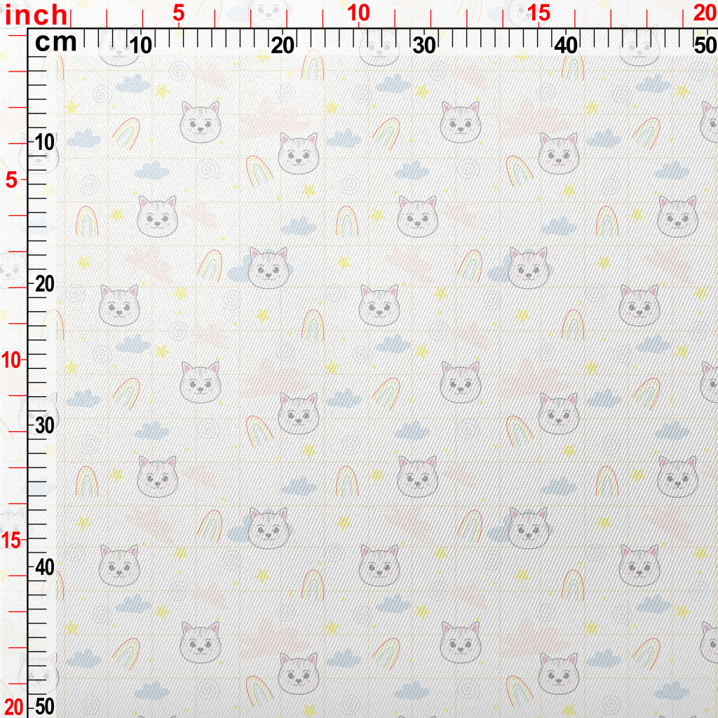大眼貓咪和彩虹斜紋布(幅寬150公分)