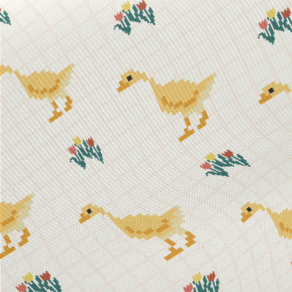像素可愛鴨子和花朵斜紋布(幅寬150公分)