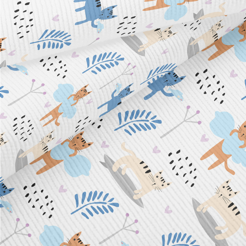 色塊卡通貓咪燈芯絨(幅寬150公分)