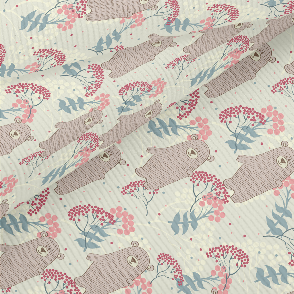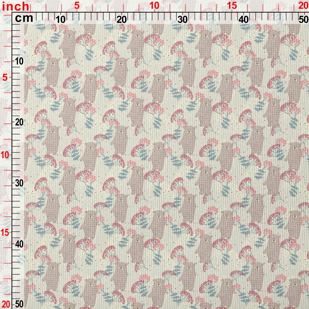 手繪小熊和花草燈芯絨(幅寬150公分)