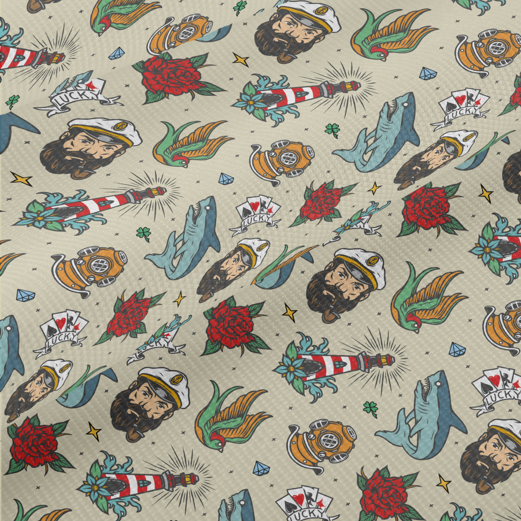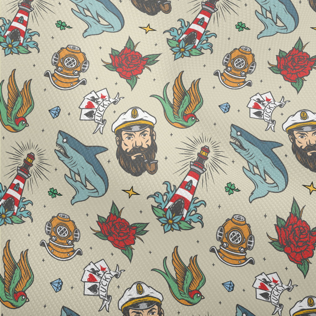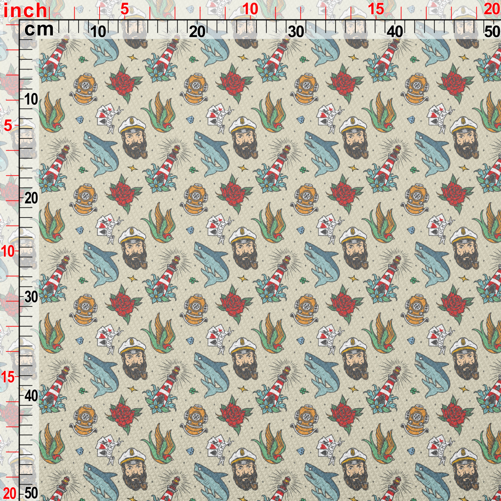 復古航海與船長頭圖案雙斜布(幅寬150公分)