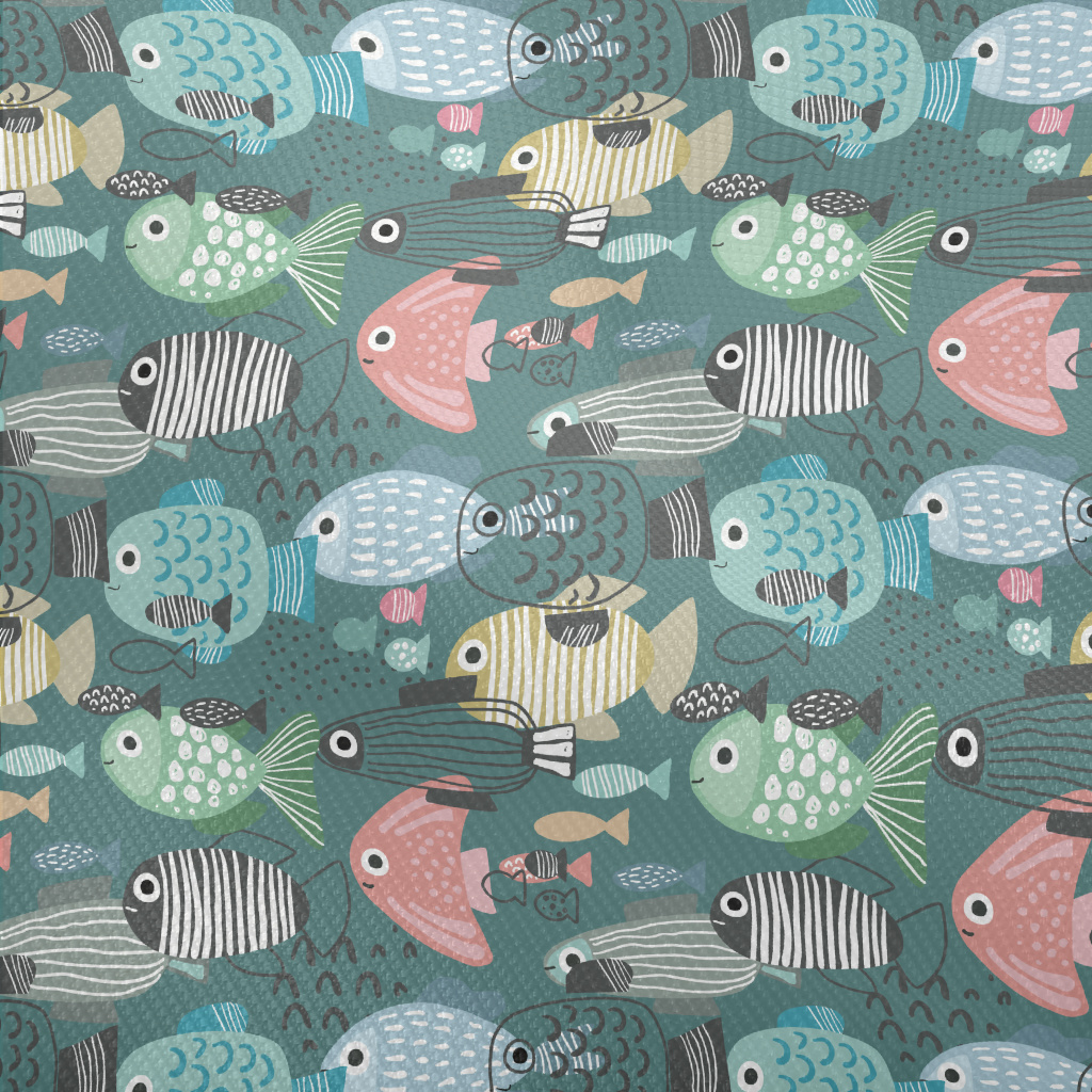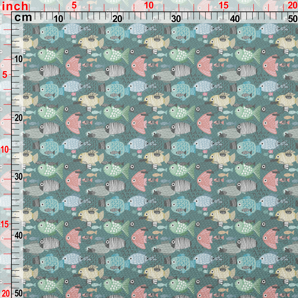兒童手繪彩色魚雙斜布(幅寬150公分)