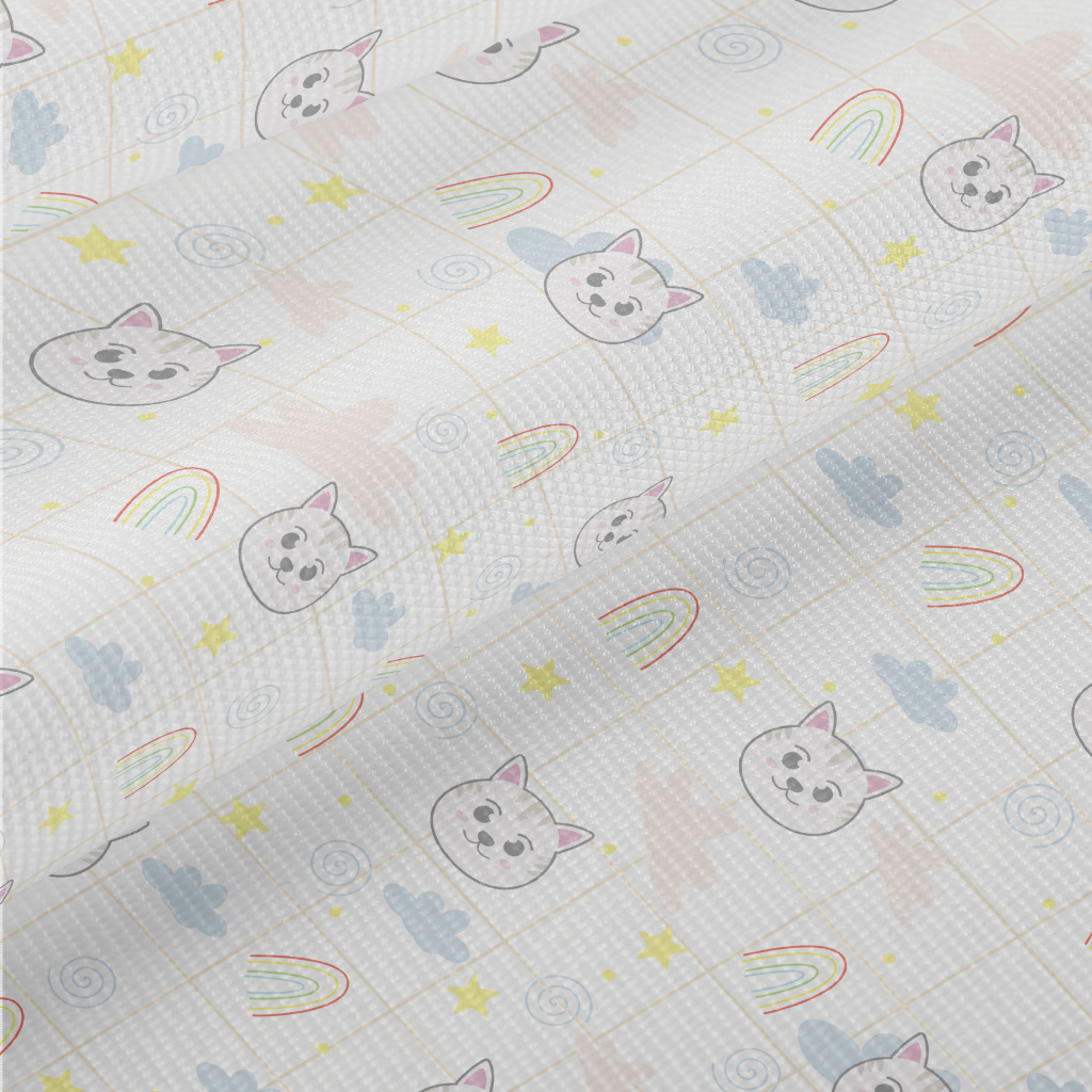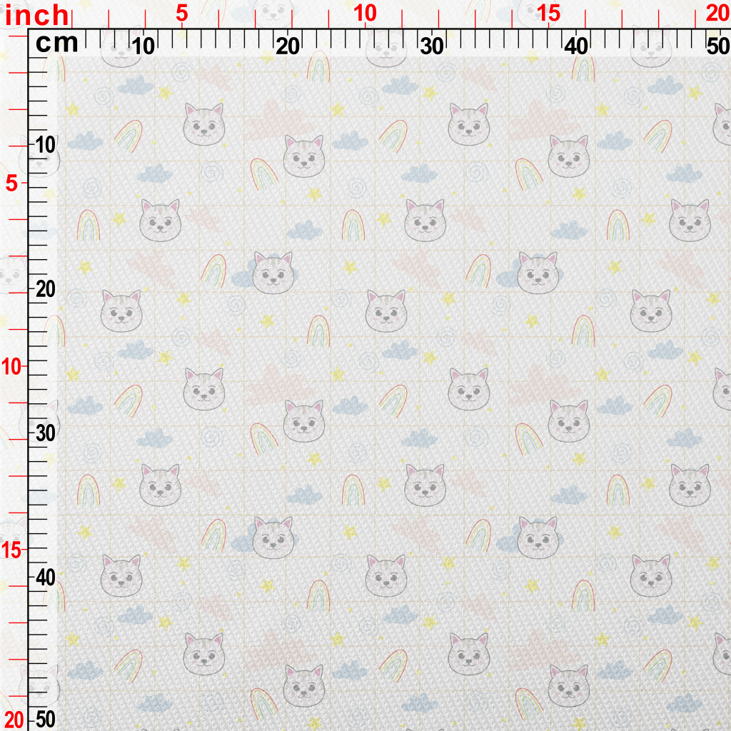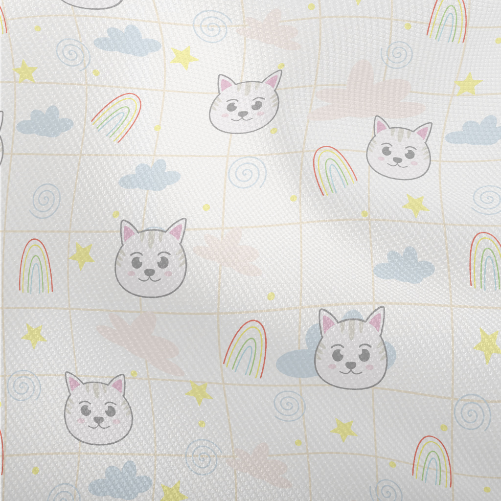 大眼貓咪和彩虹雙斜布(幅寬150公分)