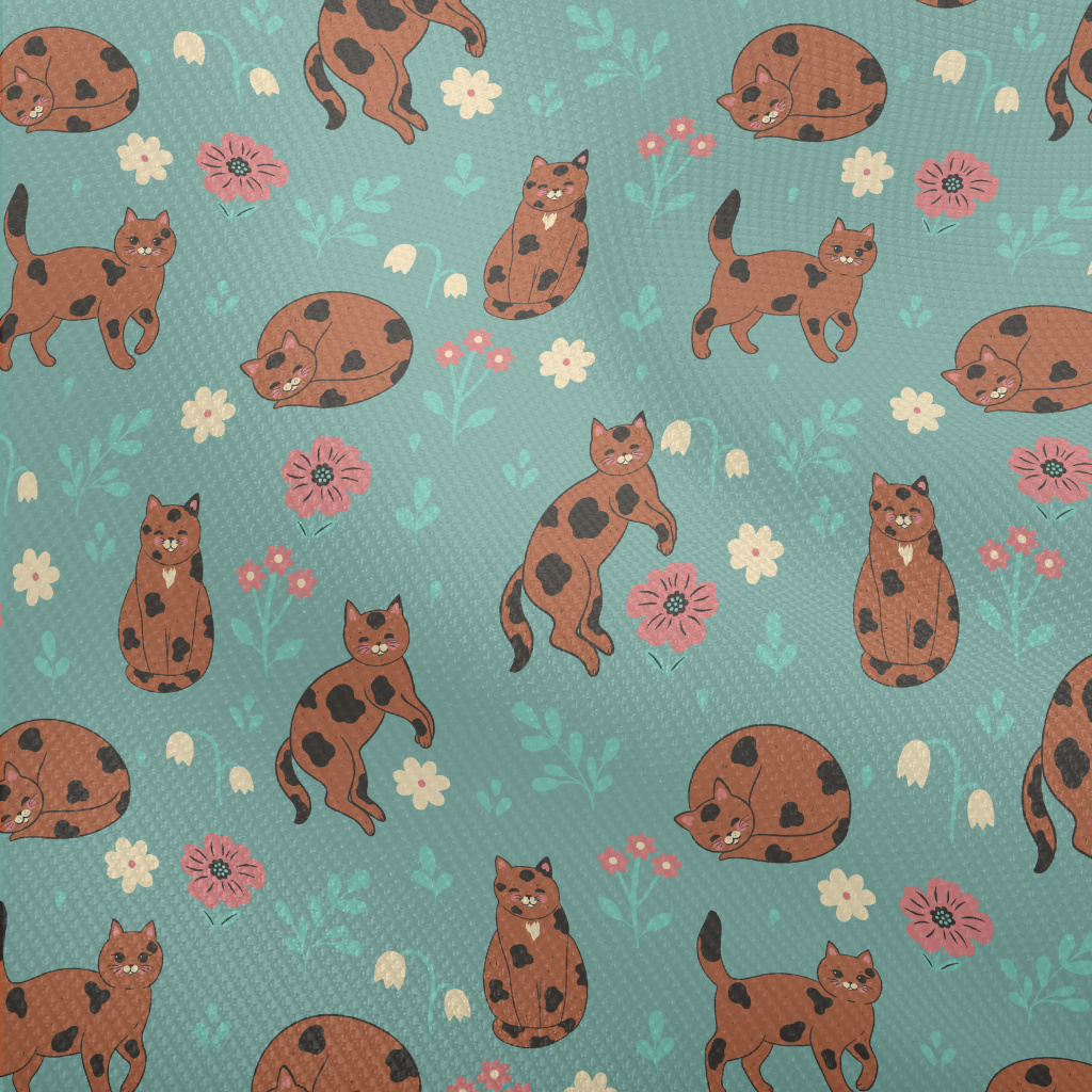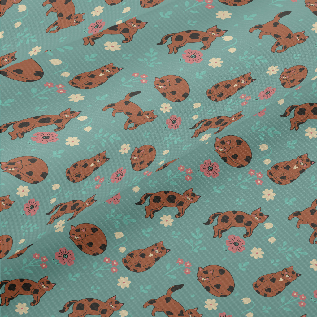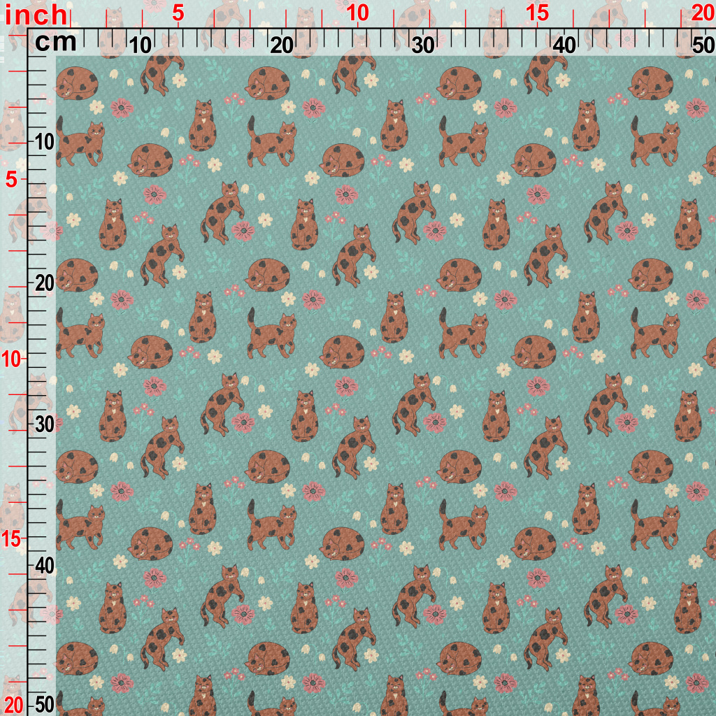 咖啡色花紋貓咪雙斜布(幅寬150公分)