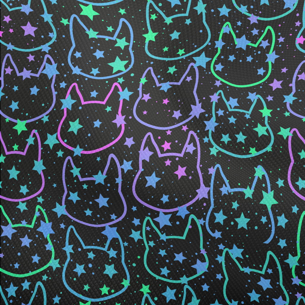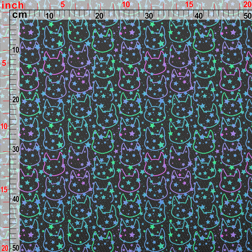 線條明亮貓咪與星星雙斜布(幅寬150公分)