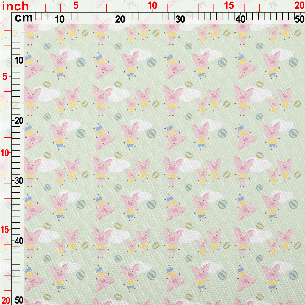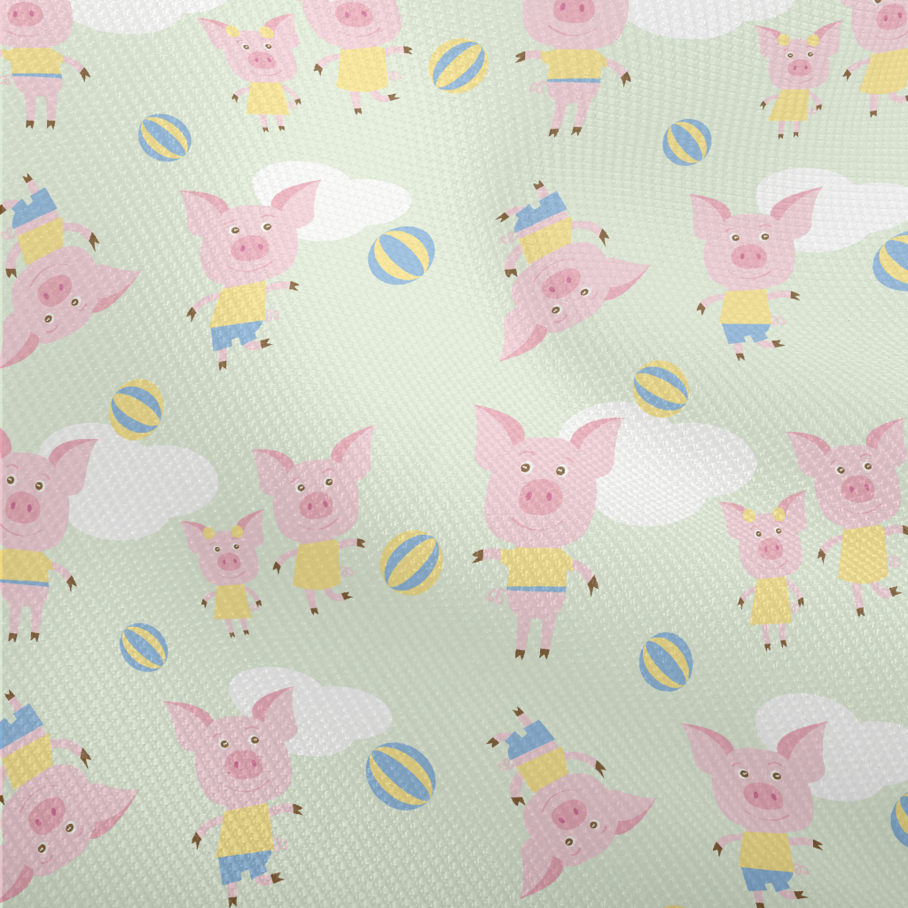 玩球的卡通小豬雙斜布(幅寬150公分)