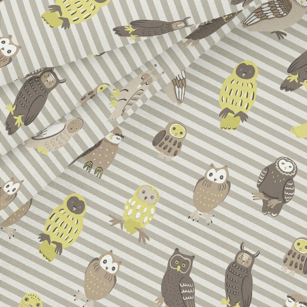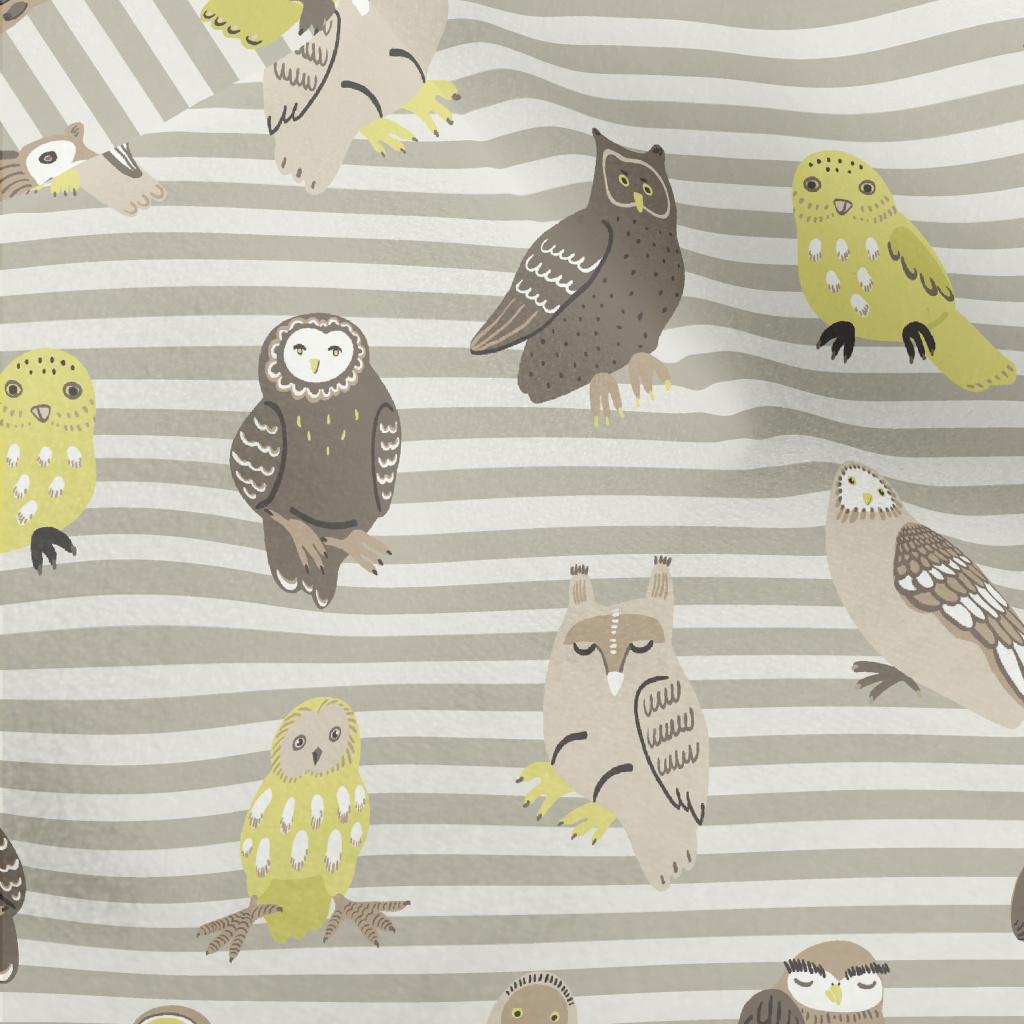 手繪各種貓頭鷹水晶絨(幅寬160公分)