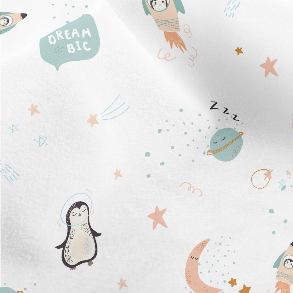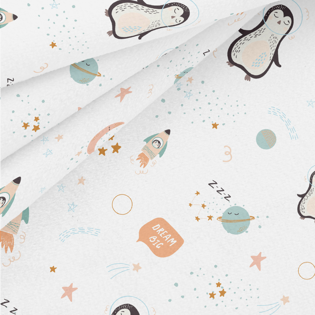 浮在太空的企鵝水晶絨(幅寬160公分)